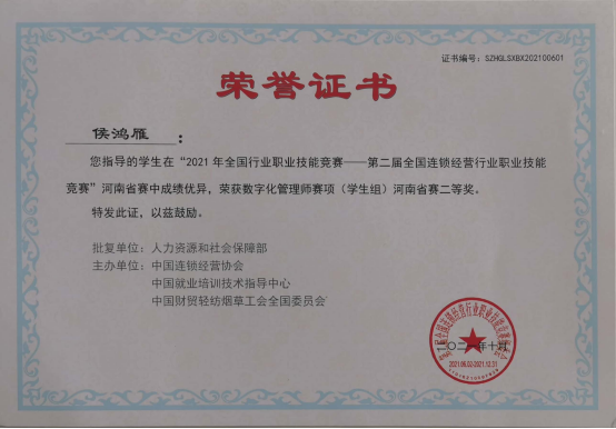 2021年连锁数字化管理师省级二等奖
