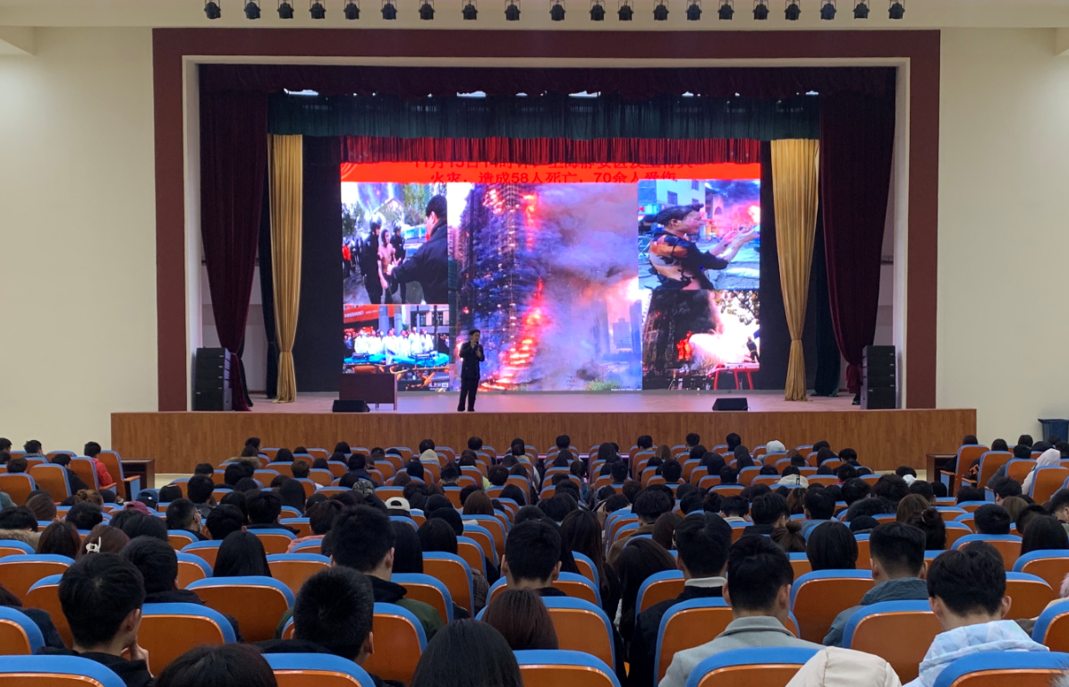 为进一步提高全体学生消防安全责任意识,普及消防安全知识,增强自防自救能力,11月31日下午,kaiyun登录中国入口登录邀请河南省消防宣教专业委员会教员王平平在大礼堂为进行消防安全知识专题培训,kaiyun登录中国入口登录辅导员、班主任和全体在校生参加了本次培训。