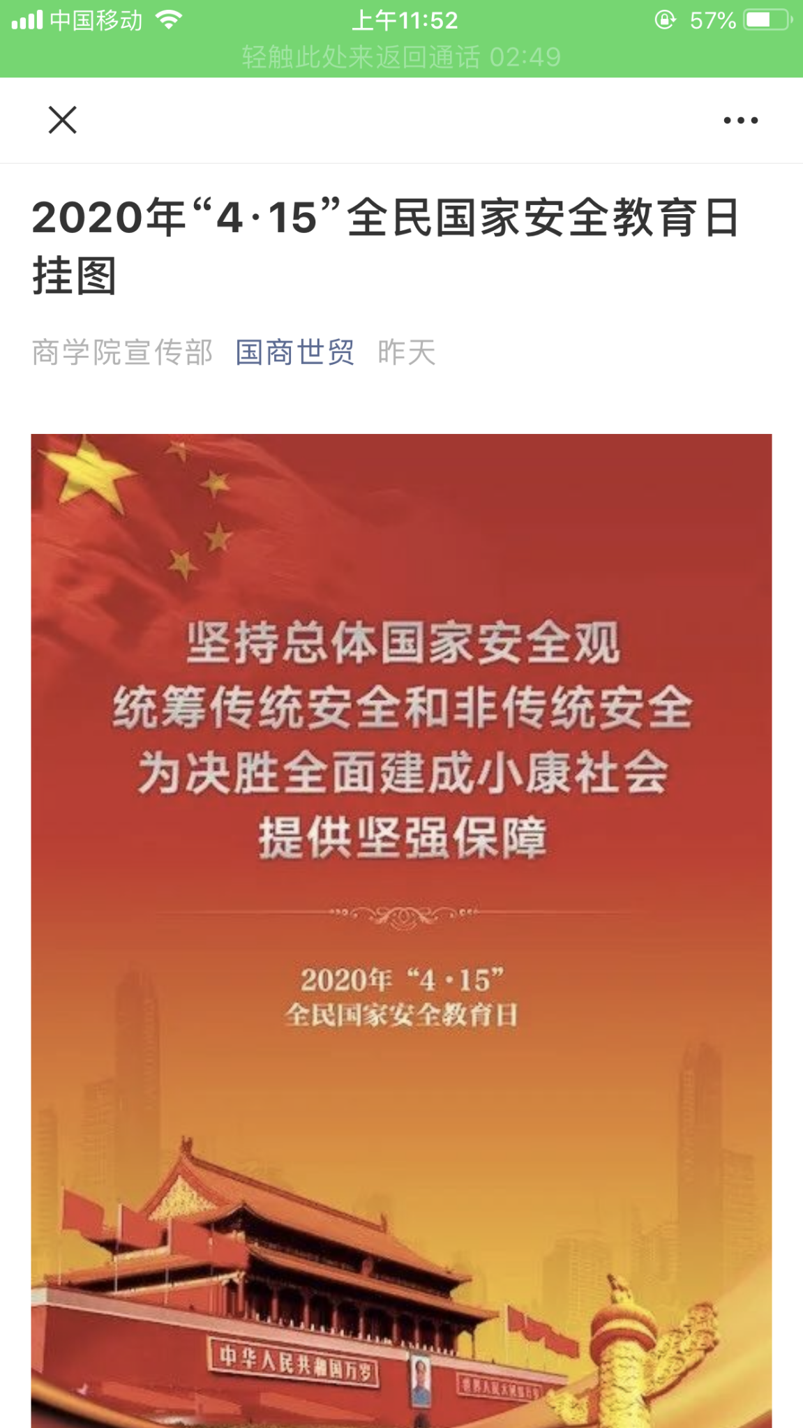 kaiyun登录中国入口登录通过多种线上平台积极宣传“全民国家安全教育日”相关知识,切实加强全体师生的国家安全意识,提升师生维护国家安全的自觉性和主动性。通过微信公众号加大推动力度。