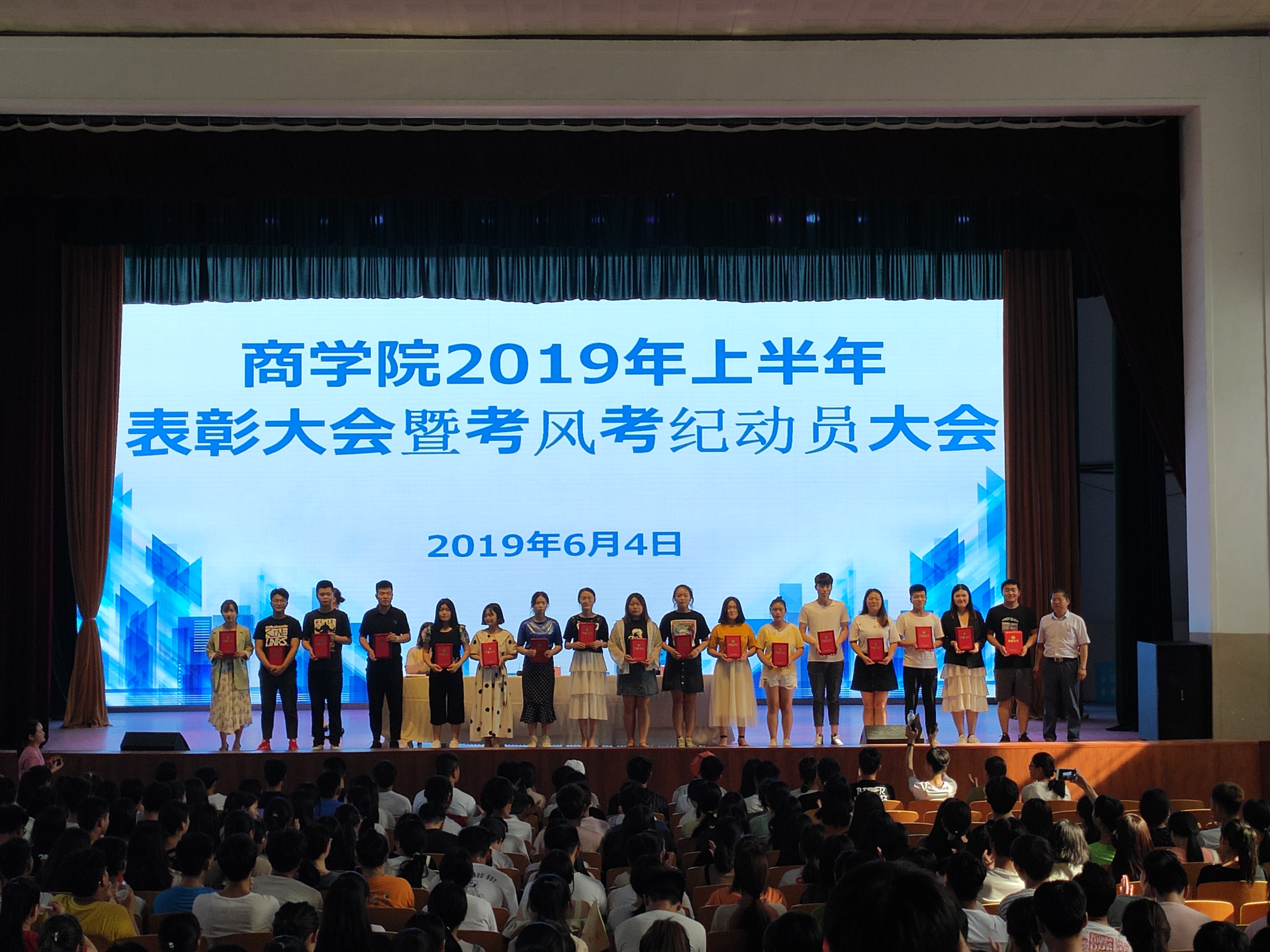 首先周燕书记宣读学校及学院表彰文件,对2017-2018学年国家励志奖学金获得者、2018-2019学年学风建设中表现突出的同学进行了表彰。孙勇院长为20名同学国家励志奖学金获得者颁发了证书,周燕书记为26名学风先进个人授予荣誉证书。