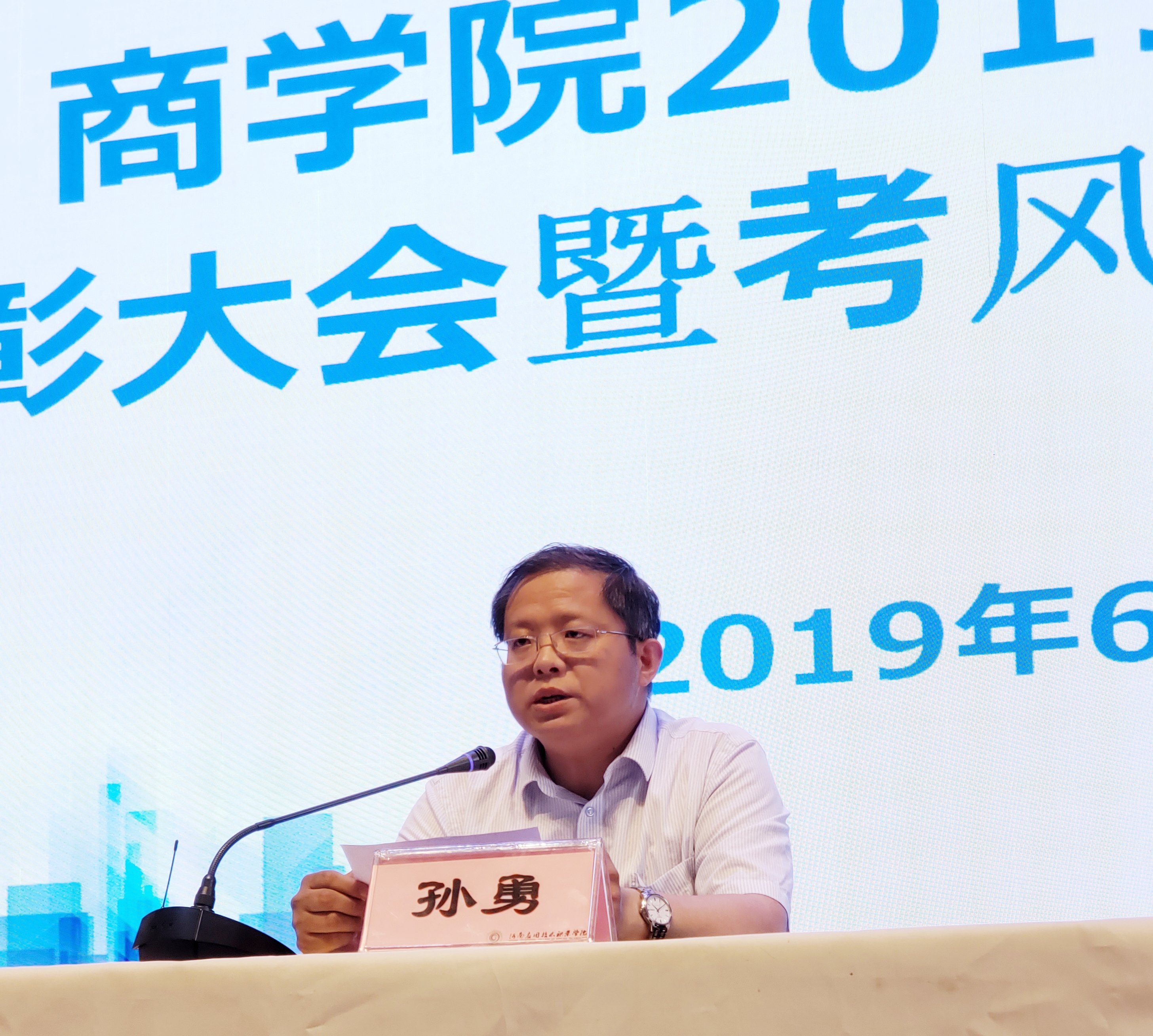 最后,孙勇院长针对学风建设以及考风考纪作重要讲话。他向同学们讲述了学风建设的重要性以及期末考试的重要意义,并谈了诚信考试事关个人学业发展,提出了“零缺考”和“零违纪”的口号,告诫同学们要认真对待每一门考试,积极准备每一门考试,在即将到来的期末考试中,考出自己的优异成绩。