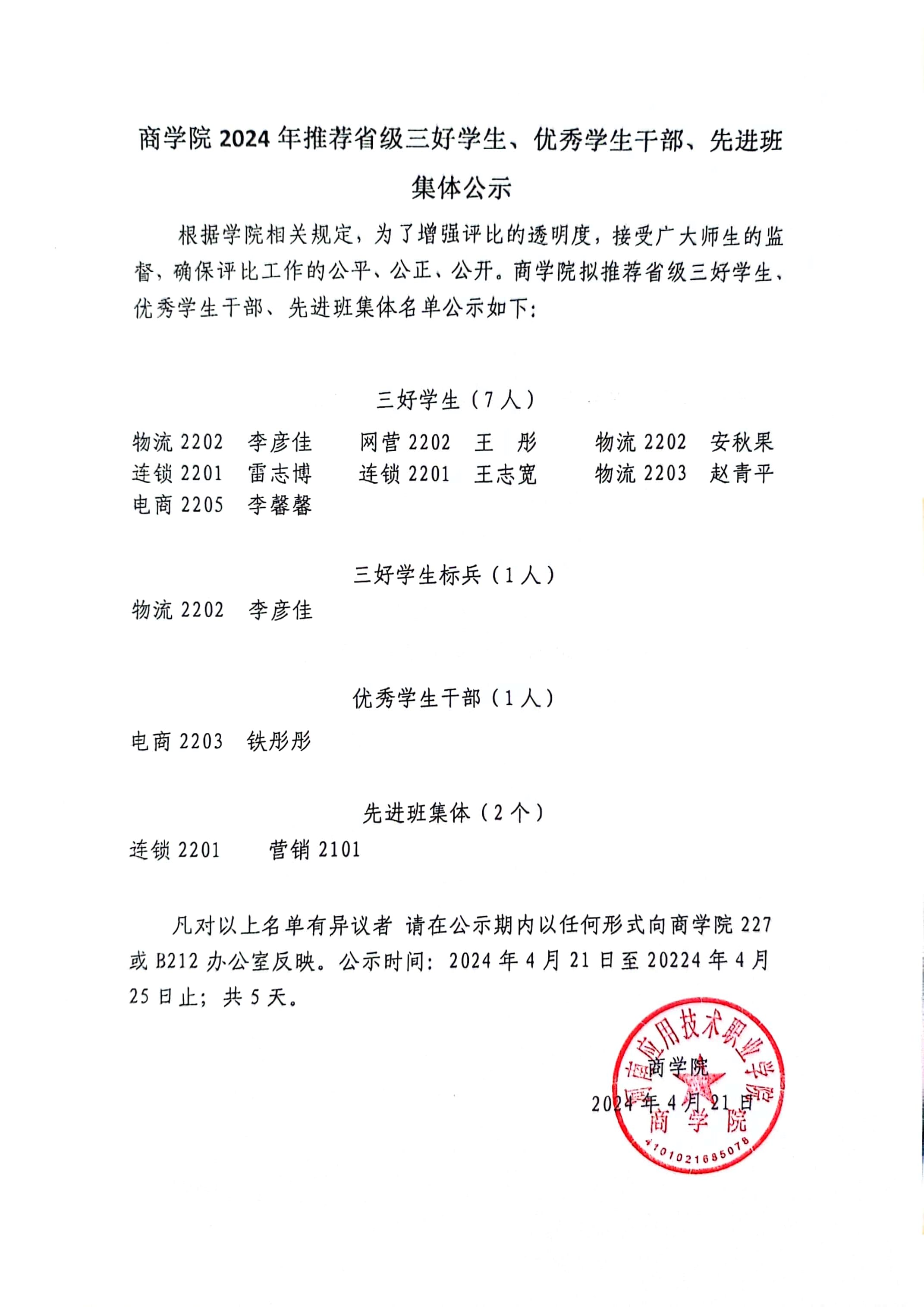 kaiyun登录中国入口登录2024年推荐省级三好学生、优秀学生干部、先进班集体公示