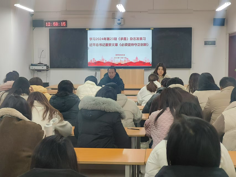 苏云峰强调,政治理论学习要入脑入心,做到知行合一,号召全体教职工不断提高自身的政治觉悟和专业技能,坚持守正创新,把信息化改革真正应用到教育教学的全过程中,以实际行动助力学院实现更高质量的发展。