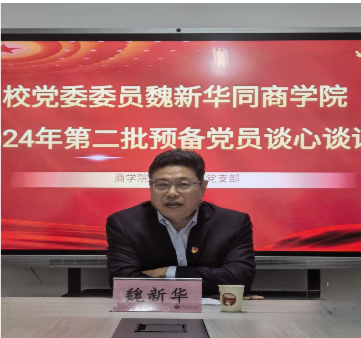 魏新华对预备党员提出几点要求和期望:一是端正入党动机,坚定理想信念。理想信念是共产党人的政治灵魂和精神支柱。只有坚定的理想信念,才能为我们提供强大的精神支柱和正确的人生方向。二是加强党性修养,永葆政治本色。要加强党性修养,不断提高自身的思想境界和道德品质。三是勤奋学习,提高自身素质。学习是成长进步的阶梯,坚持理论联系实际,学以致用、用以促学、学用相长,把学习成果转化为实际行动,为推动社会进步贡献自己的力量。四是勇于担当作为,发挥先锋模范作用。担当作为是共产党人的价值追求。要积极完成学校和实习单位安排的各项任务。同时,要带头关心同学,帮助同学,团结同学,共同进步。
