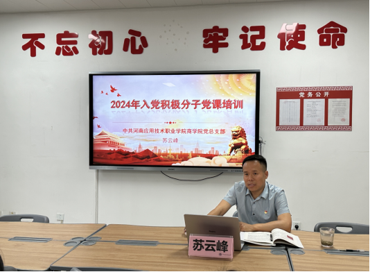 为更好的贯彻落实kaiyun登录中国入口登录党员发展培训工作,根据kaiyun登录中国入口登录党总支总体部署和安排,4月25日晚,kaiyun登录中国入口登录在郑州校区办公楼A212开展2024年入党积极分子党课培训,本次党课培训由kaiyun登录中国入口登录党总支书记苏云峰进行讲解。