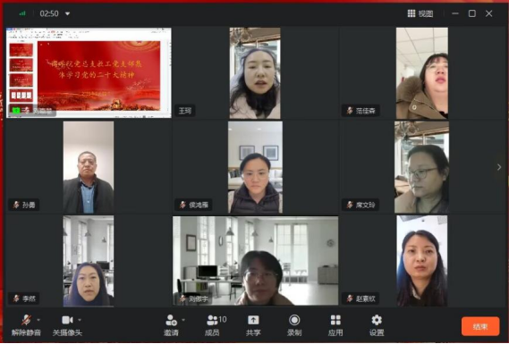 学工党支部书记王倩强调:要深入学习领会党的二十大报告阐述的“全面建成社会主义现代化强国”丰富内涵,要把握好习近平新时代中国特色社会主义思想的世界观和方法论,落实到自身的行动上。