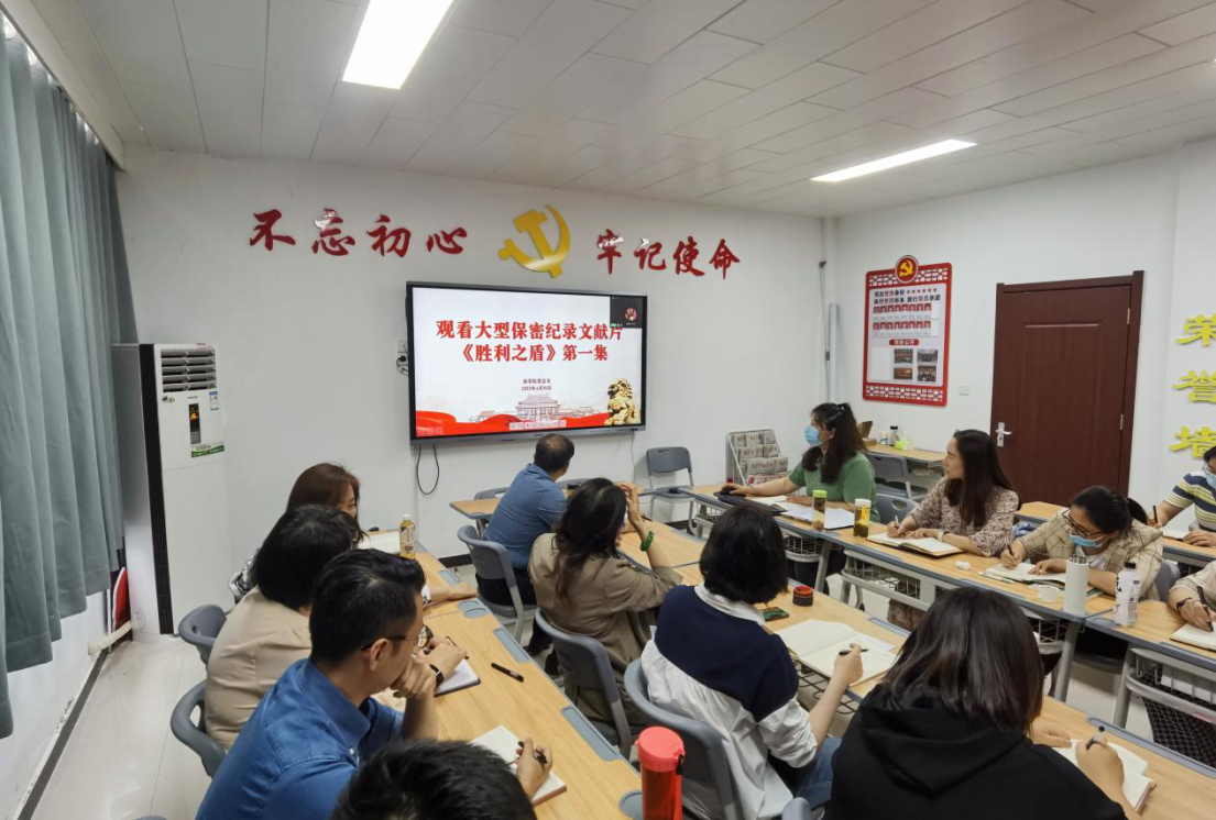 2022年4月26日下午,kaiyun登录中国入口登录在办公楼504组织东西校区全体教师集中观看大型保密纪录文献片《胜利之盾》。