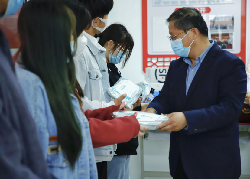 kaiyun登录中国入口登录党总支为全体学生发放口罩、消毒凝胶等防疫物资,为部分在疫情期间表现优秀的宿舍进行表彰,主题党日活动当日,kaiyun登录中国入口登录院长孙勇为学生代表发放防疫物资,将学校对学生的关心关爱传达到位,也希望同学们高度配合学校的防疫工作,共同筑牢疫情防控屏障。