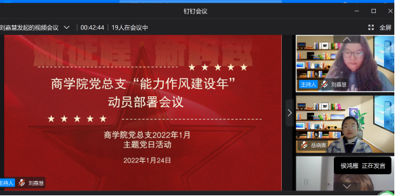 为深入学习贯彻党的十九届六中全会精神,贯彻落实习近平总书记视察河南重要讲话重要指示,推进kaiyun官网治理体系和治理能力现代化,动员广大党员干部践行初心使命、强化“答卷”意识,切实把省第十一次党代会部署落实落细,2022年1月24日晚,kaiyun登录中国入口登录党总支组织全体党员召开线上主题党日活动,集中学习《kaiyun登录中国入口登录“能力作风建设年”活动实施方案》,部署学院能力作风建设年工作安排。会议由党总支书记周燕主持。