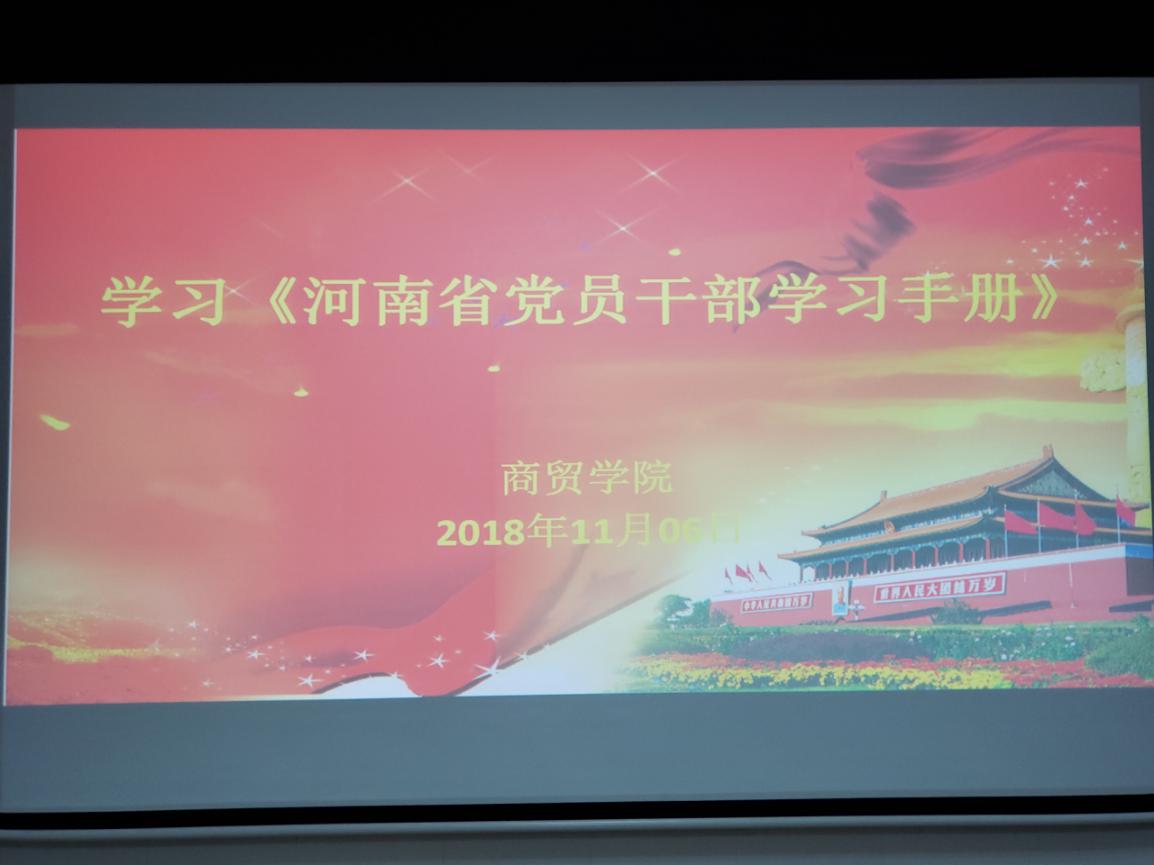 为深入贯彻落实习近平新时代中国特色社会主义思想和党的十九大精神,提升党员干部政治理论素养,11月6日下午商贸学院党总支组织学习了《河南省党员干部学习手册》。学习由党总支书记周燕主持,商贸学院全体教师参加。