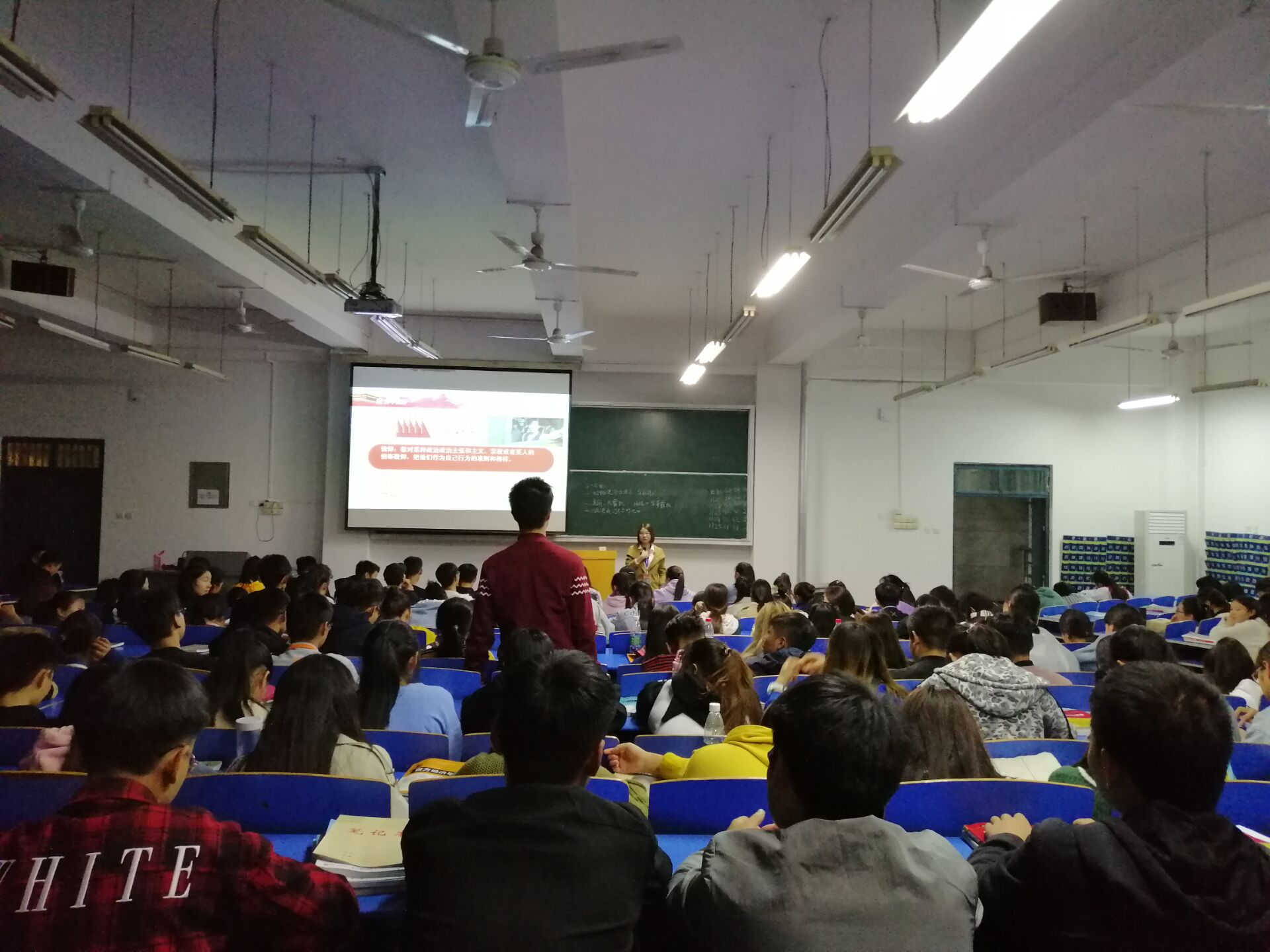 徐小洁老师讲解的社会主义核心价值观,她条理清晰的从三个层次讲解了社会主义核心价值观的深刻内涵,并引用习近平总书记关于社会主义核心价值观的系列讲话和深刻论述,阐释社会主义核心价值观的重要性。最后徐老师动员同学们,作为当代大学生,要学习习近平总书记重要讲话精神,积极践行社会主义核心价值观,为构建社会主义和谐社会贡献力量。