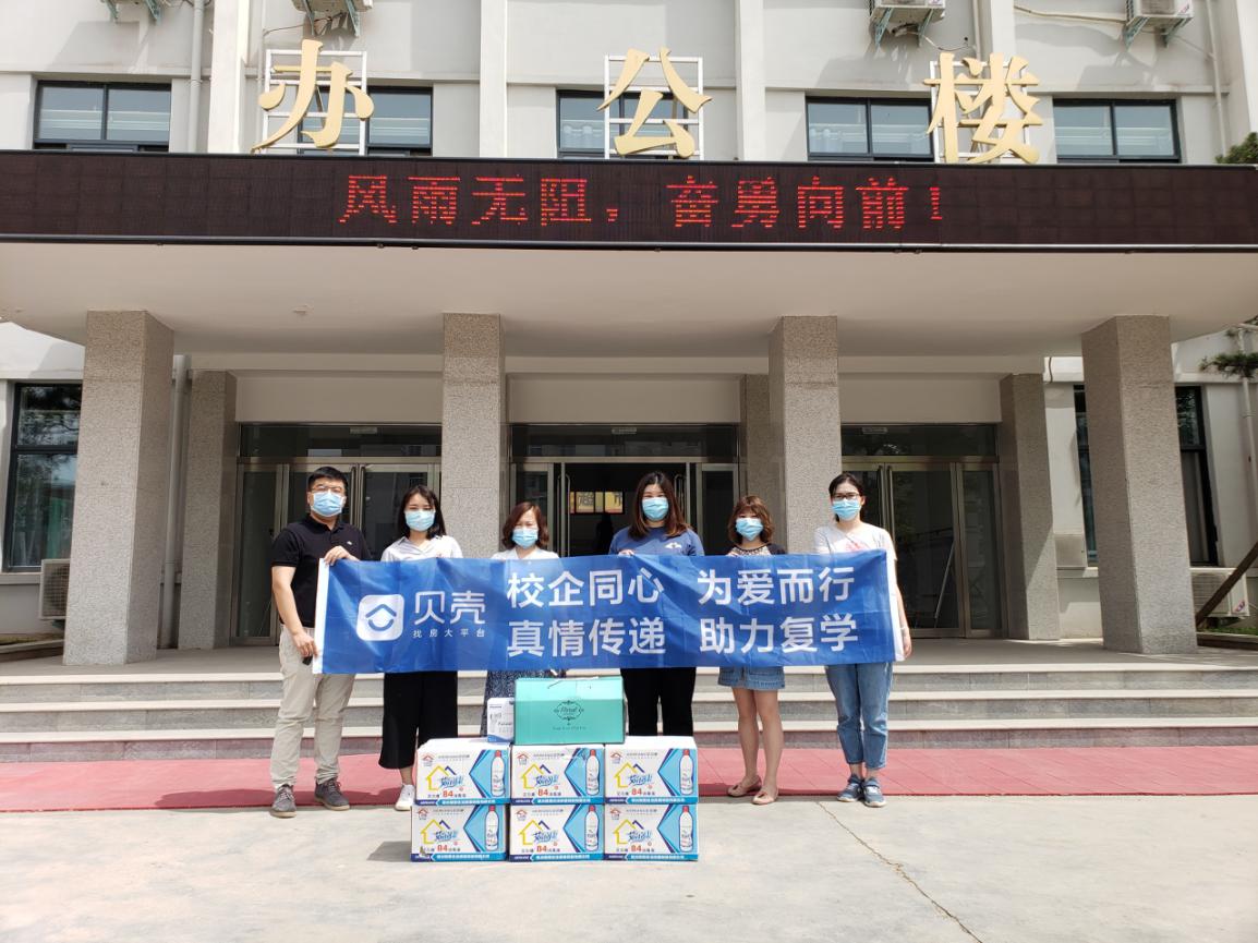 5月27日上午,河南贝壳信息技术有限公司校招部主管李梦梦、陈家乐代表企业向kaiyun官网kaiyun登录中国入口登录捐赠了消毒液、洗手液、体温计等疫情防控物资,携手助力学生返校复学后疫情防控工作。