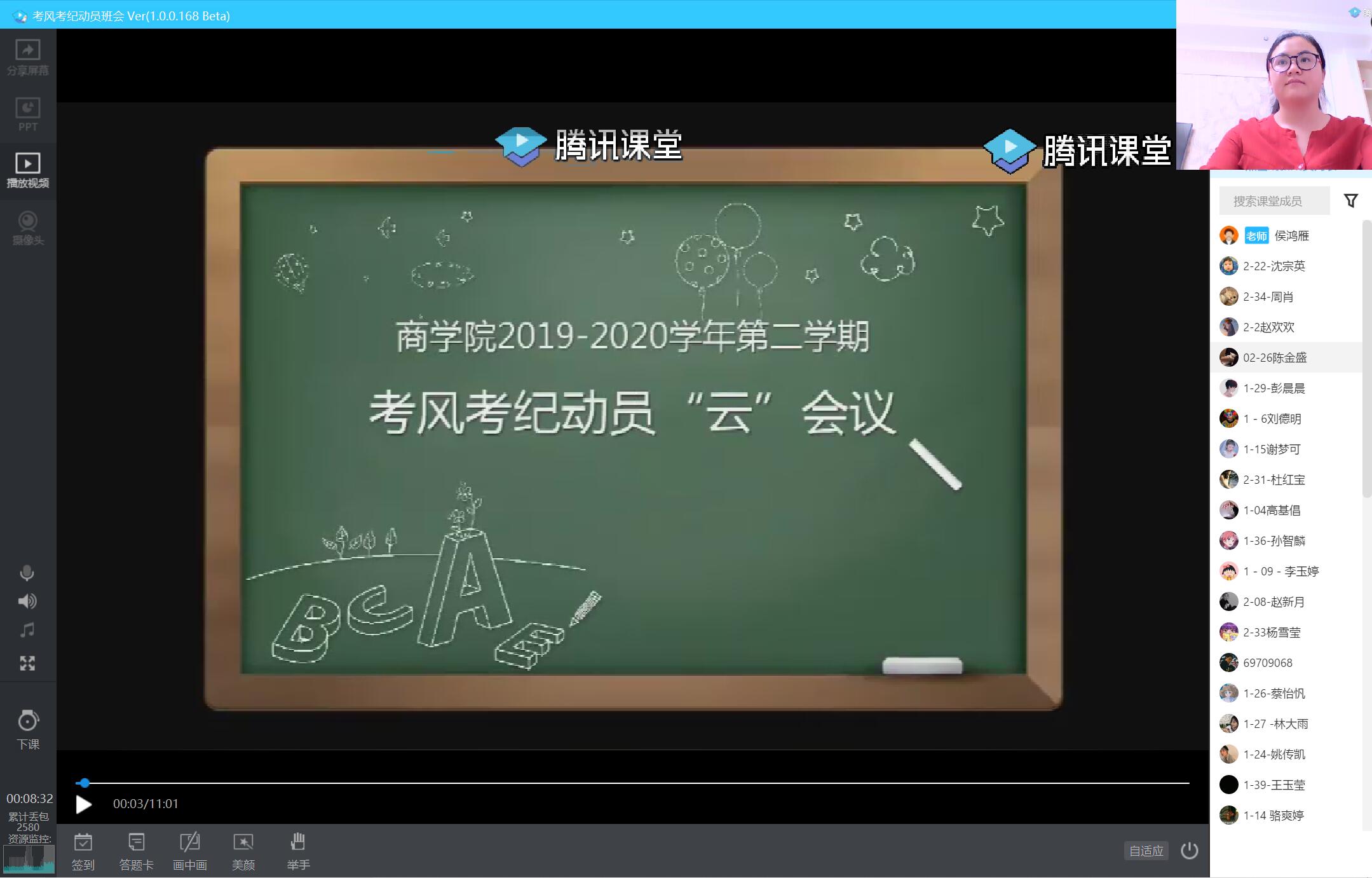 考风是良好的校风、学风的重要体现。期末考试临近,为进一步加强对大学生诚信教育,建设优良的学风、校风,鼓励学生沉着、冷静、诚实备考,5月24日,kaiyun登录中国入口登录通过腾讯课堂、钉钉群视频等方式组织2018级各班级召开考风考纪动员“云”会议。