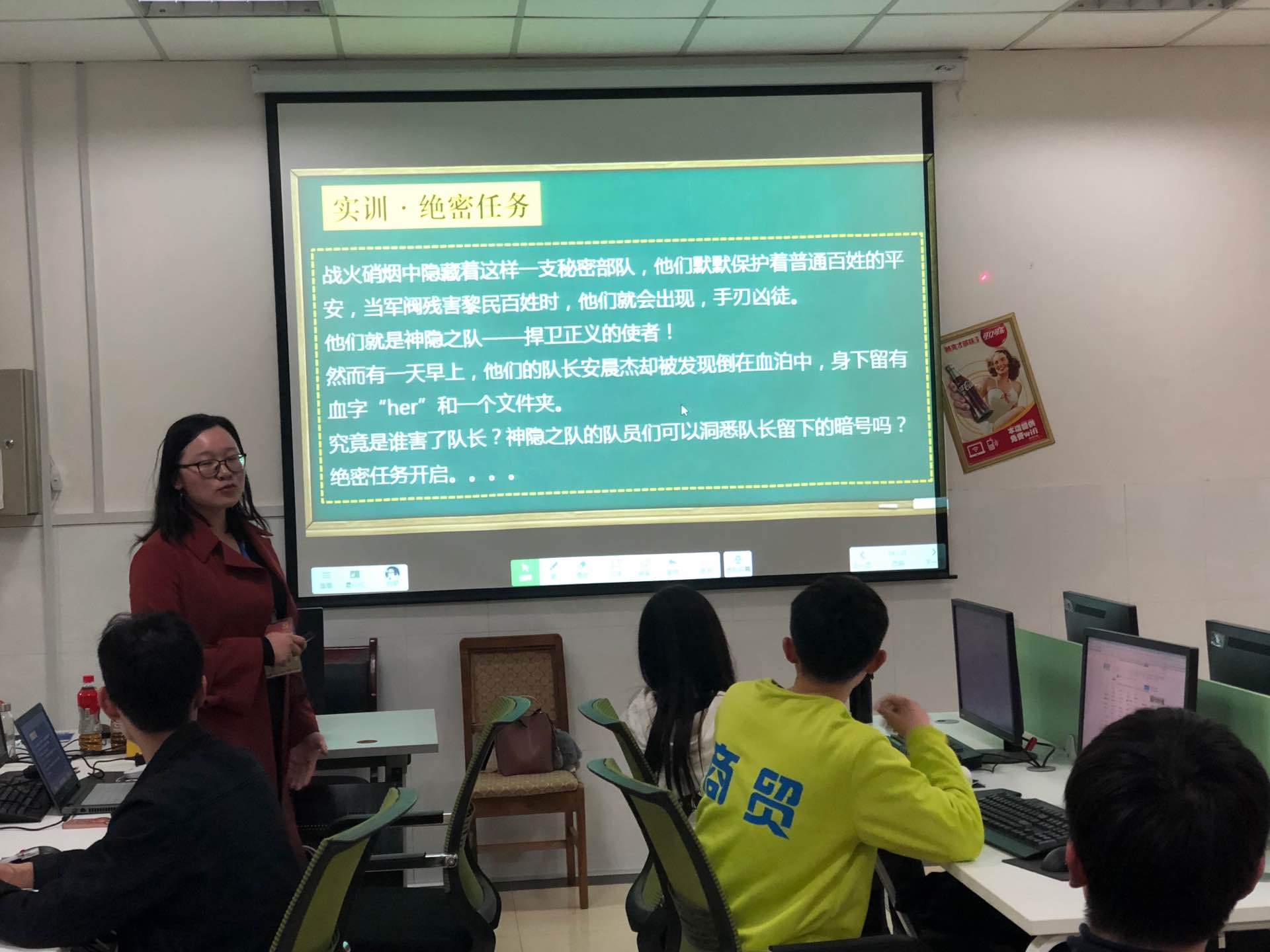 上课期间,吴老师以一个魔术表演,成功抓住了老师和同学们的好奇心,吴老师在最后的魔术解密中说:“几乎每一个魔术师都有托……,我和我的托之间的交流就是运用了加密,是最简单的语言加密技术”,由此引出本节课的主题,——“加密技术”。