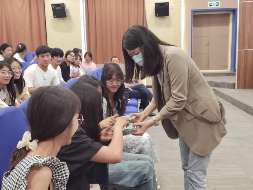 讲座中,王国奇用朴素的语言,为同学们深入浅出地介绍了非物质文化遗产-宋代汝瓷的发源史、汝瓷的烧制技术与过程。为了让学生更加深入地了解宋代汝瓷的相关知识,王国奇在讲座过程中还与学生亲切互动,同学们踊跃发言,场面热烈。