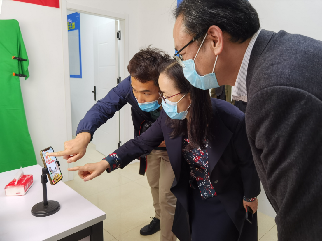 校领导来到位于实训楼六楼的电商创客角,就职业体验活动的组织情况、师生参与情况等内容进行询问,并走进直播间深入了解“新上岗”的互联网营销师们的工作内容。