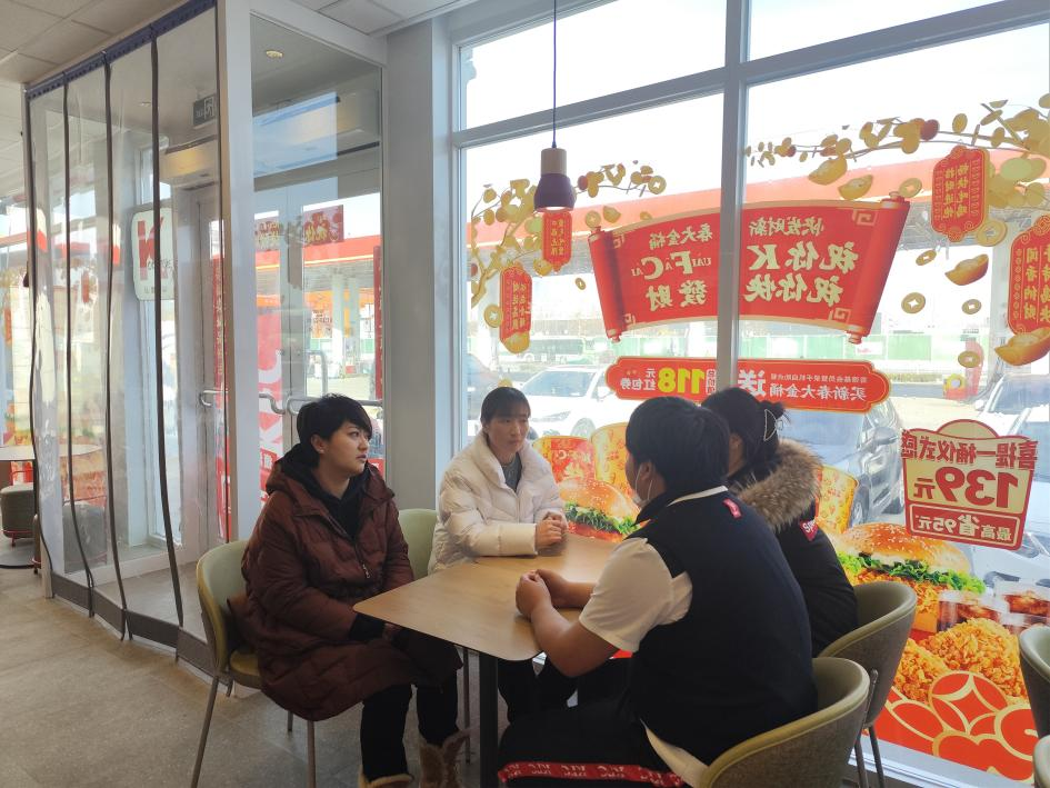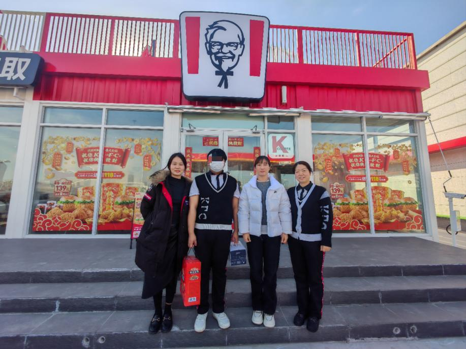 最是情暖岁寒时,一叶一枝总关情。为进一步做好学院拓岗访企和资助育人工作,深入贯彻落实国家和学校的学生资助政策,拓宽学生就业渠道。1月24日,由kaiyun登录中国入口登录党总支副书记王倩带队,专职辅导员庞轶以及兼职辅导员马晓月前往肯德基商都路博学路中石油店,为正在顶岗实习的家庭经济困难学生送去学校的温暖和新春的祝福。