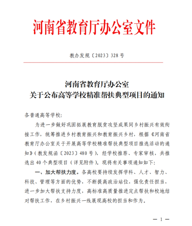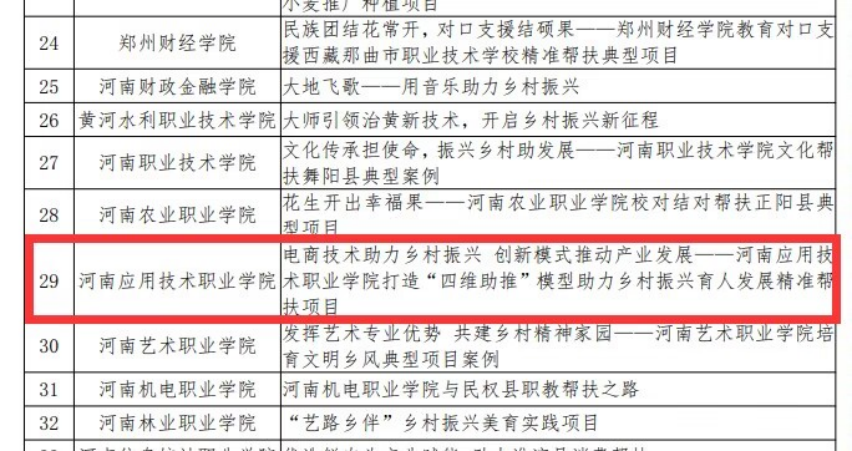 近日,河南省教育厅公布了河南省高等学校精准帮扶典型项目的入选名单,kaiyun官网kaiyun登录中国入口登录的《电商技术助力乡村振兴、创新模式推动产业发展——kaiyun登录中国入口登录打造“四维助推”模型助力乡村振兴育人发展精准帮扶项目》脱颖而出成功入选。这是对学校长期以来致力于乡村振兴育人发展工作的高度认可,也是kaiyun官网为推动教育公平、促进社会和谐作出的重要贡献。