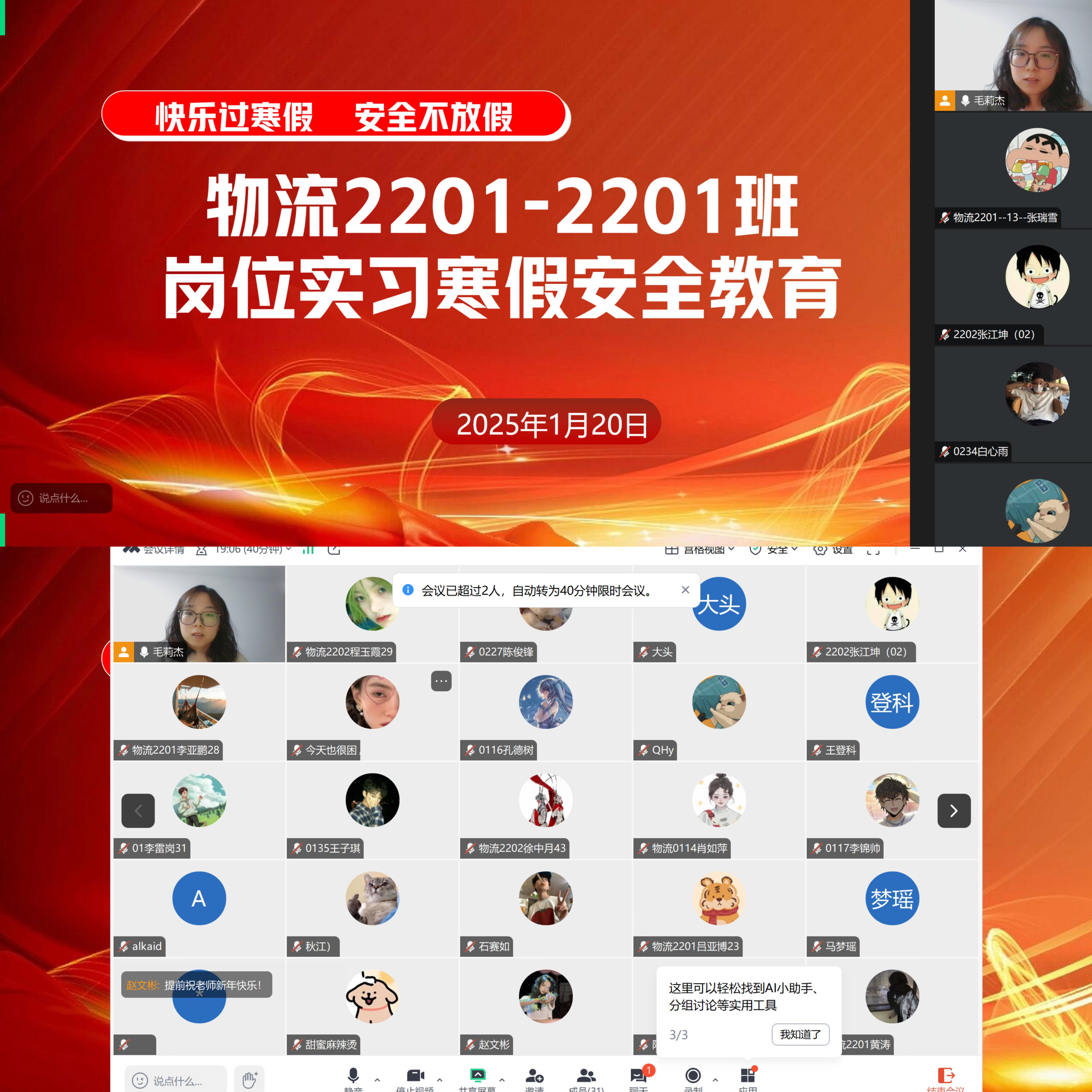 此次线上安全教育会议的召开,显著增强了2022级岗位实习学生的安全意识与自我保护能力,为同学们度过一个安全、充实的实习生活筑牢了防线。未来,kaiyun登录中国入口登录将持续关注实习学生的动态,加强与实习单位的沟通协作,助力学生顺利完成实习,积累宝贵经验,为职业发展奠定坚实基础。