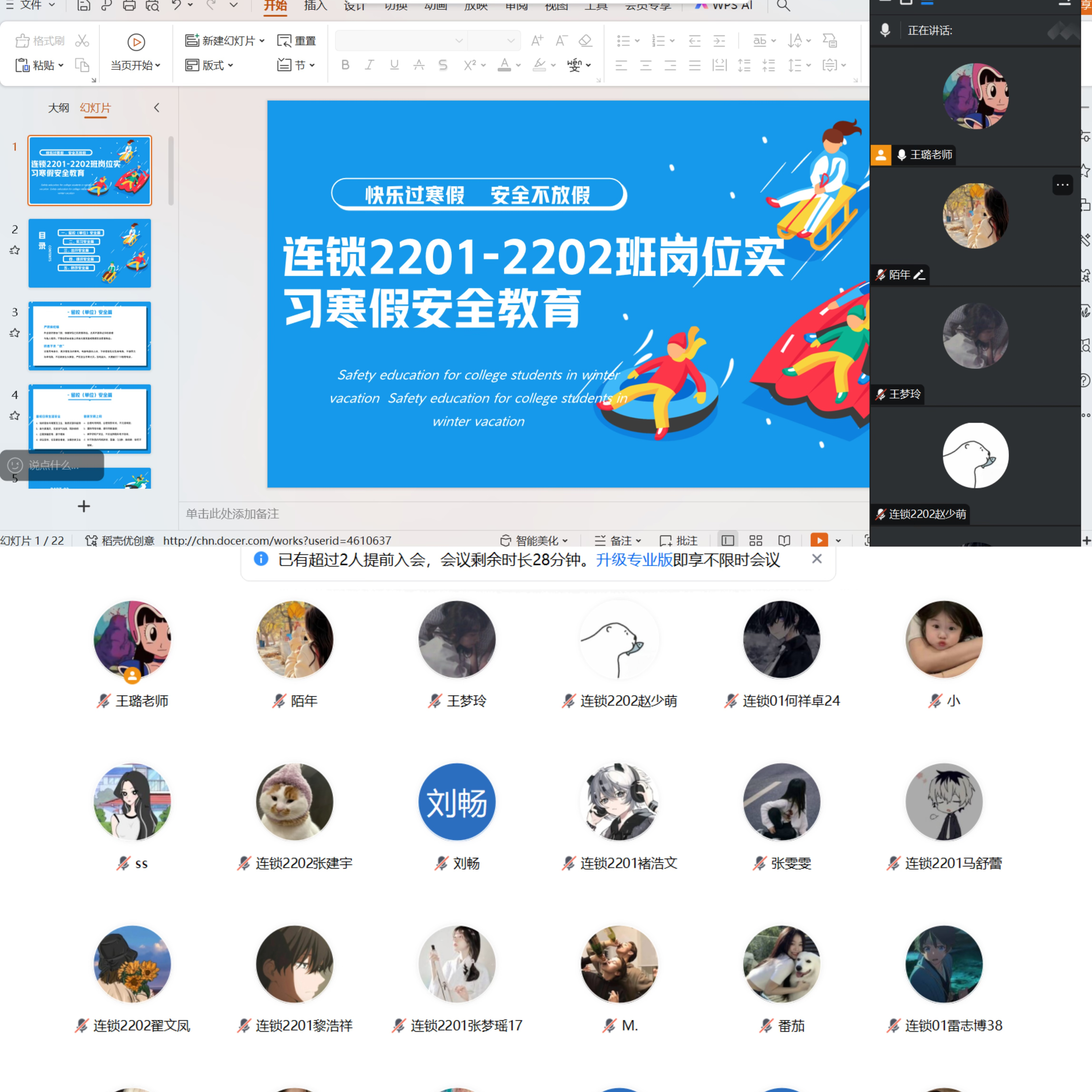 为进一步强化2022 级岗位实习学生的安全意识,保障学生在实习期间的人身和财产安全,近日,kaiyun登录中国入口登录组织开展了2022 级岗位实习学生安全教育会议。本次会议由各班级实习指导教师以线上会议形式分别给负责班级召开。