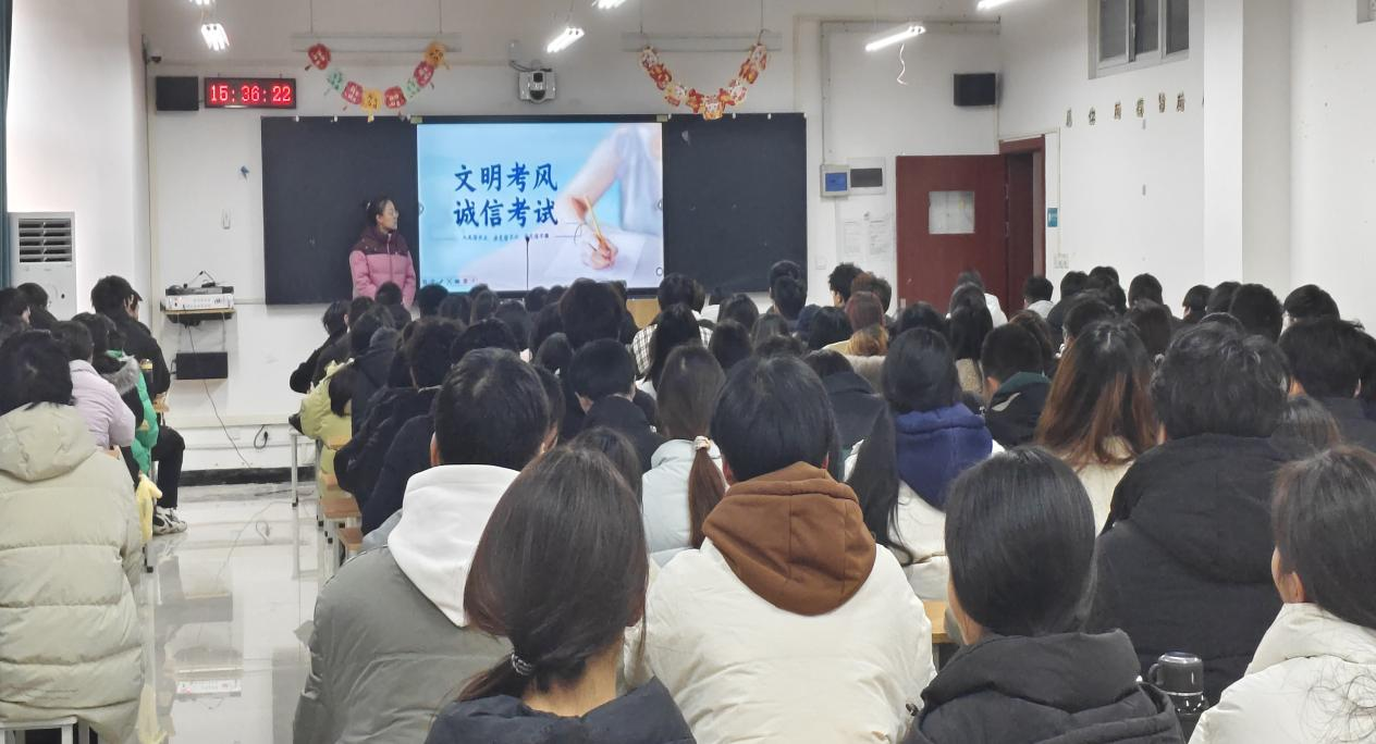 王珂详细解读了本次期末考试的各项安排,包括考试时间、考场分布等关键信息,确保学生清晰了解考试规范。她指出,考试是检验学习成果、提升自我的机会,希望同学们在坚守诚信底线的同时,坚持用良好的学习态度和正确的学习方法,有序复习,沉着应对考试。