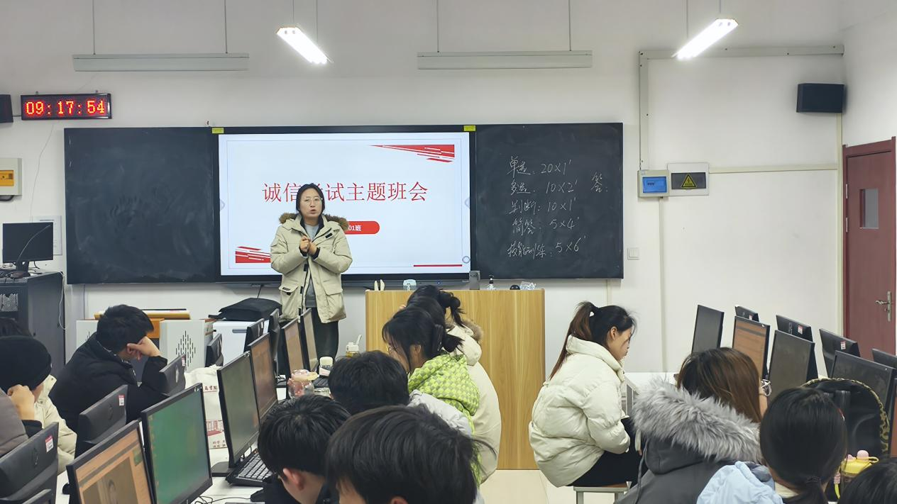 大会结束后,学院辅导员积极开展诚信考试主题班会。在班会上,辅导员们深入剖析考试作弊所带来的严重后果,如成绩作废、纪律处分以及对个人声誉和未来发展的负面影响等,让学生们深刻认识到考试作弊的危害。同时,辅导员们针对学生在复习过程中遇到的问题和困惑进行耐心解答,帮助学生们消除焦虑情绪,增强考试信心,确保学生们能以正确的态度和充分的准备迎接期末考试。