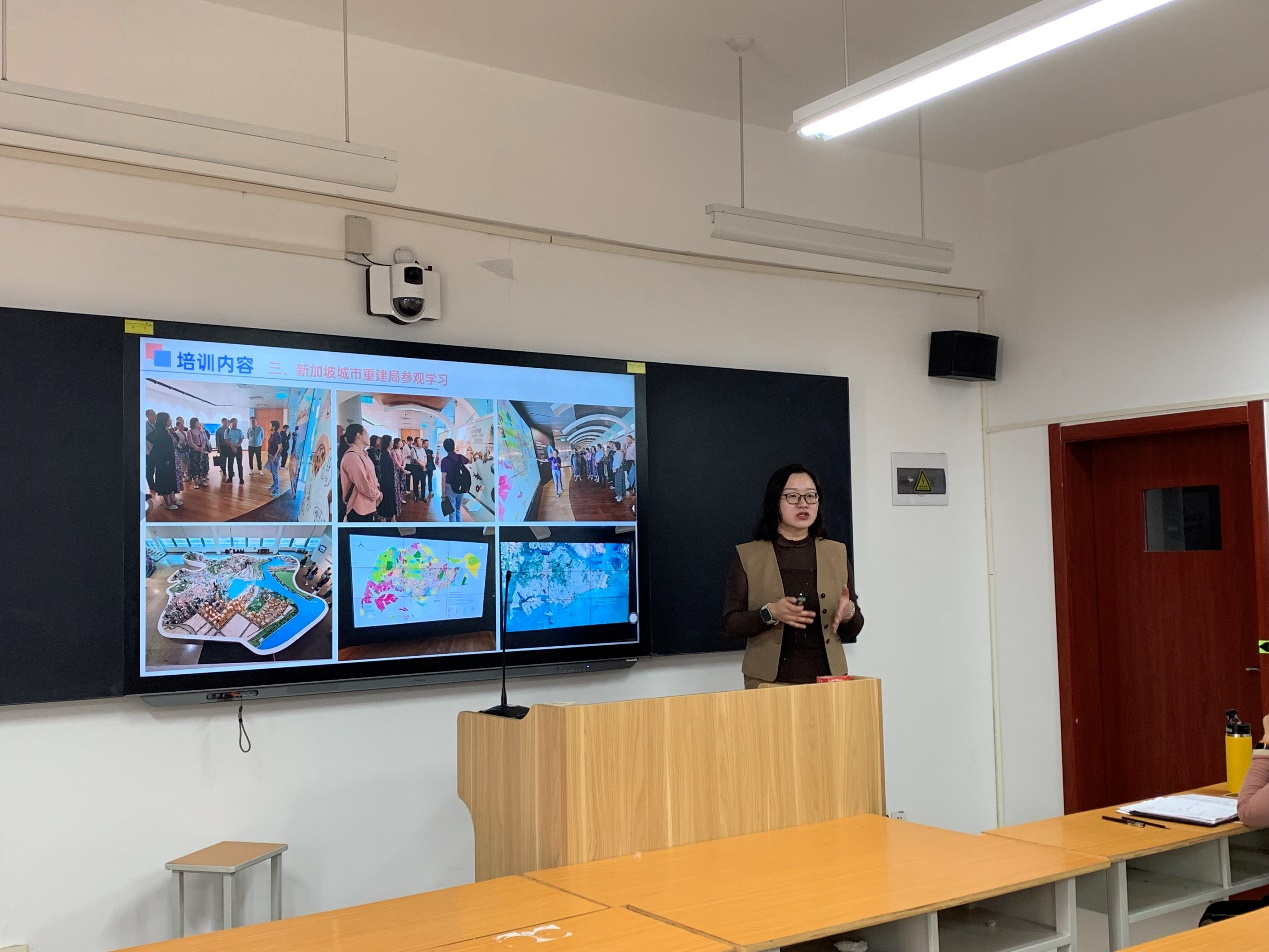 吴昀首先介绍了培训中的核心内容。在教育理念方面,NTU展现出多维度创新,涵盖学习空间、方法、技术、内容和评估等。例如,学习空间突破传统,学生先线上学习理论,再小班实践;课程设置丰富,涉及计算能力、虚拟与现实等。同时,对新加坡城市建设相关的参观学习也带来启发,如城市重建局的规划理念以及花园城市建设的思路。