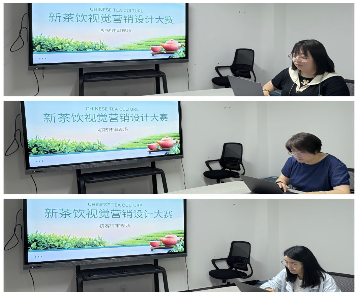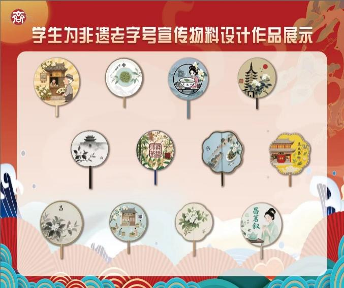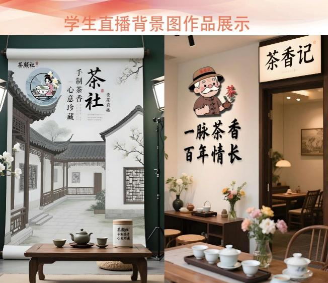 大赛围绕“品牌名称+logo+slogan设计”“团扇宣传物料设计”以及“直播背景与手举KT板设计”三个环节展开,要求参赛学生将视觉传达、品牌构建、电商营销等知识融会贯通,以数字设计手段为非遗老字号注入时代新意。参赛作品从王大昌茶庄的百年历史和非遗技艺中汲取灵感,融合传统美学与现代审美,充分展现了电商专业学生创意思维与技术实力。评审由电商专业教师共同组成,依据“创意性、元素融合度、风格表现、内容传达、作品完整性”五大维度进行评分,确保专业性与公平性。