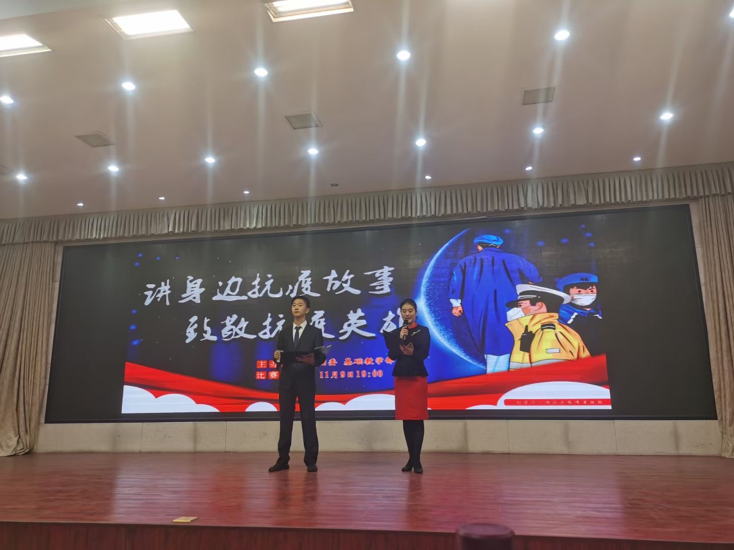 决赛竞技场上,选手们个个精神饱满、准备充分,演讲内容紧扣主题,积极向上,富有真情实感。同学们端庄大方的仪态,自然得体的举止,体现了朝气蓬勃的精神风貌。他们以自己的声音作媒介,用自己的情感来讴歌这些在抗击疫情一线的白衣天使和平民英雄们!