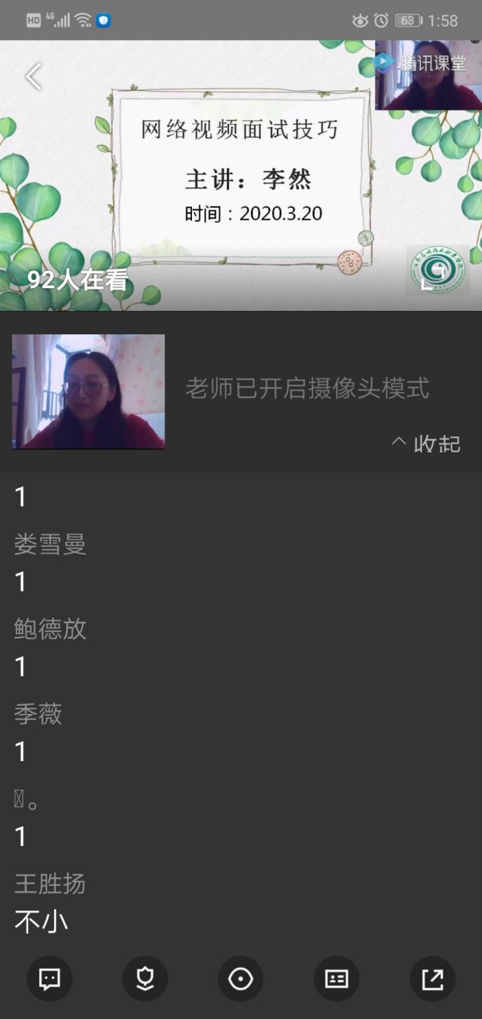 kaiyun登录中国入口登录的李然、李力、刘超三位老师分别以“云面试技巧”、“在线简历制作”、防疫心理疏导以及就业协议签订及档案落户等内容进行分享讲解,为毕业生们带来了“云求职”的技能辅导和就业前的各项准备工作的重点解答。学院党总支副书记周燕老师及2020届毕业生同时在线观看。