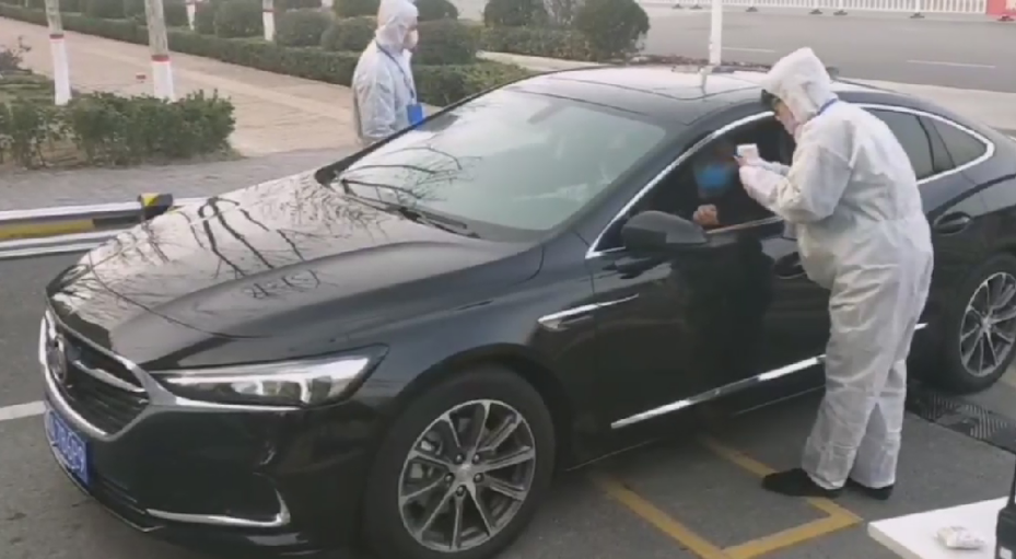 宋潇南、裴成阳同学对过往车辆进行检疫测温工作