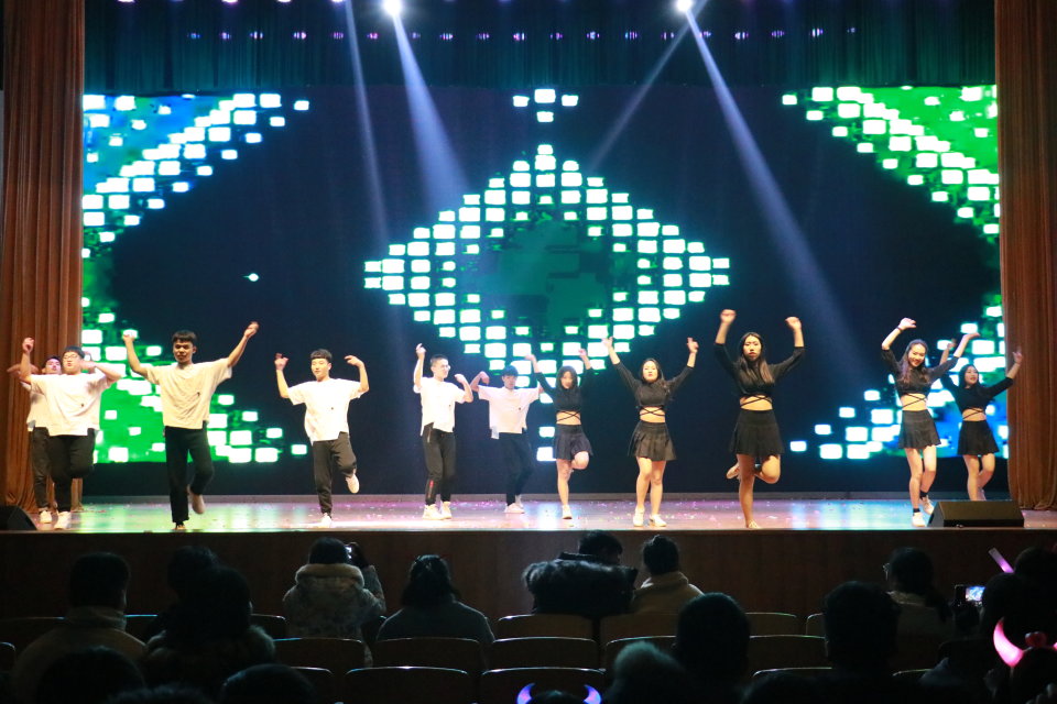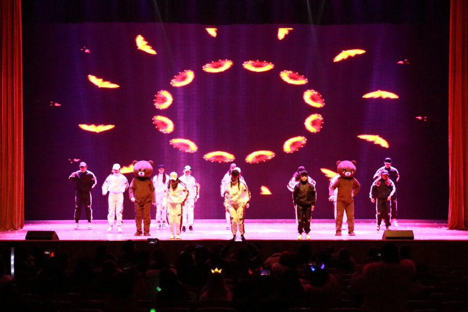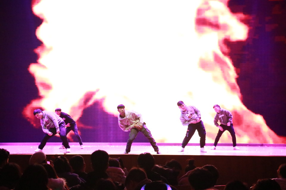 转瞬之间,我院组织部的男生与空乘专业的美女演绎了一支激情四射的舞蹈《eiei》,引爆全场的氛围。