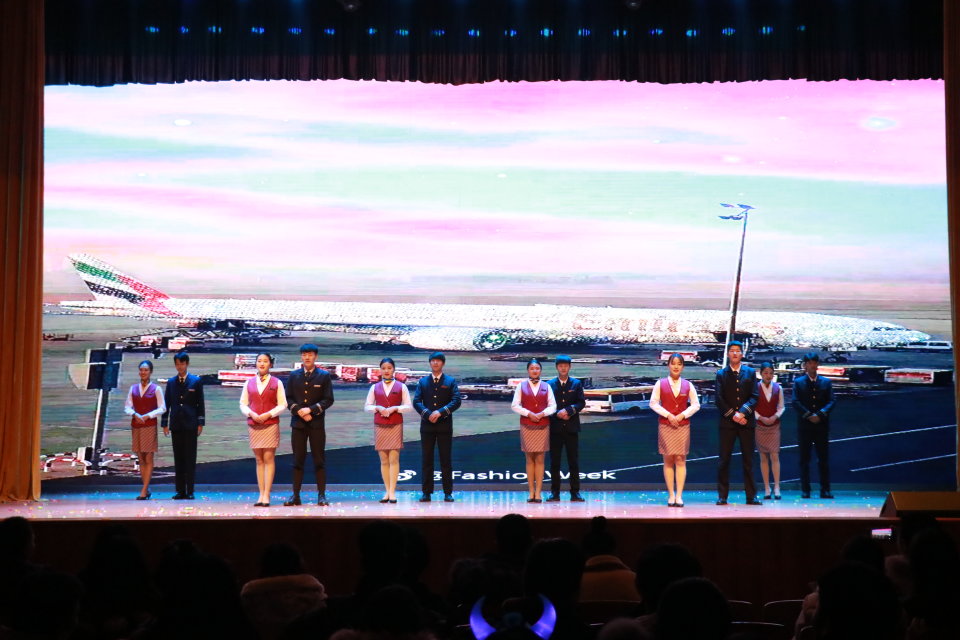 空乘专业的帅哥美女向在场的观众展示了他们的专业技能与素养。