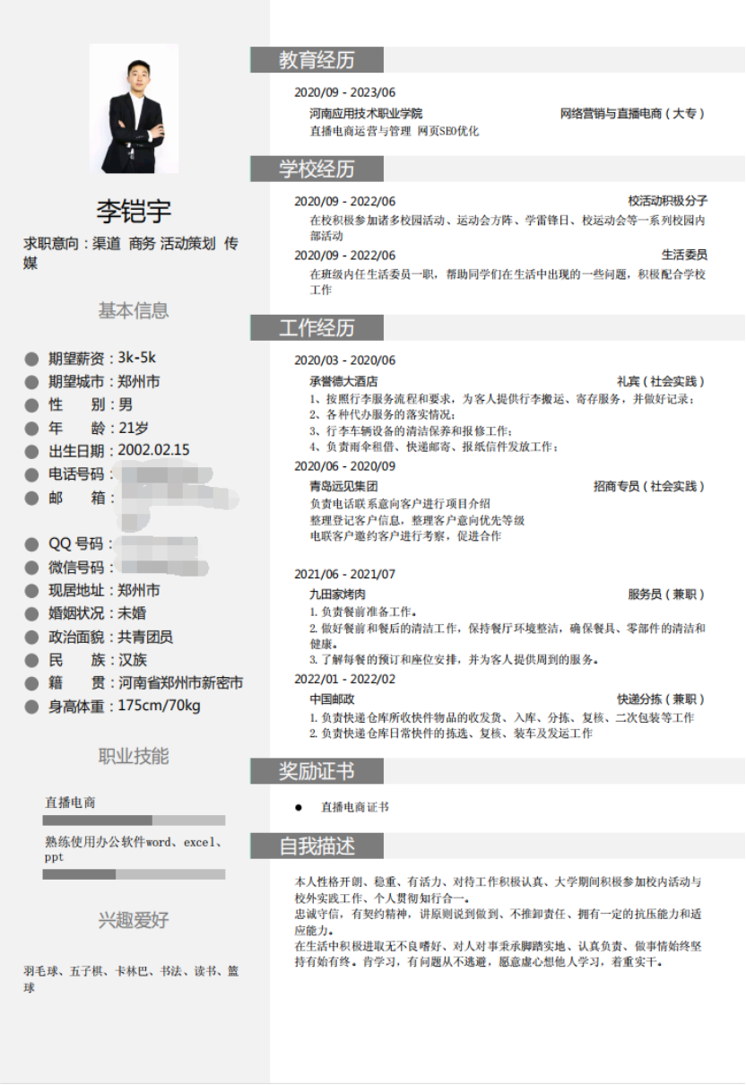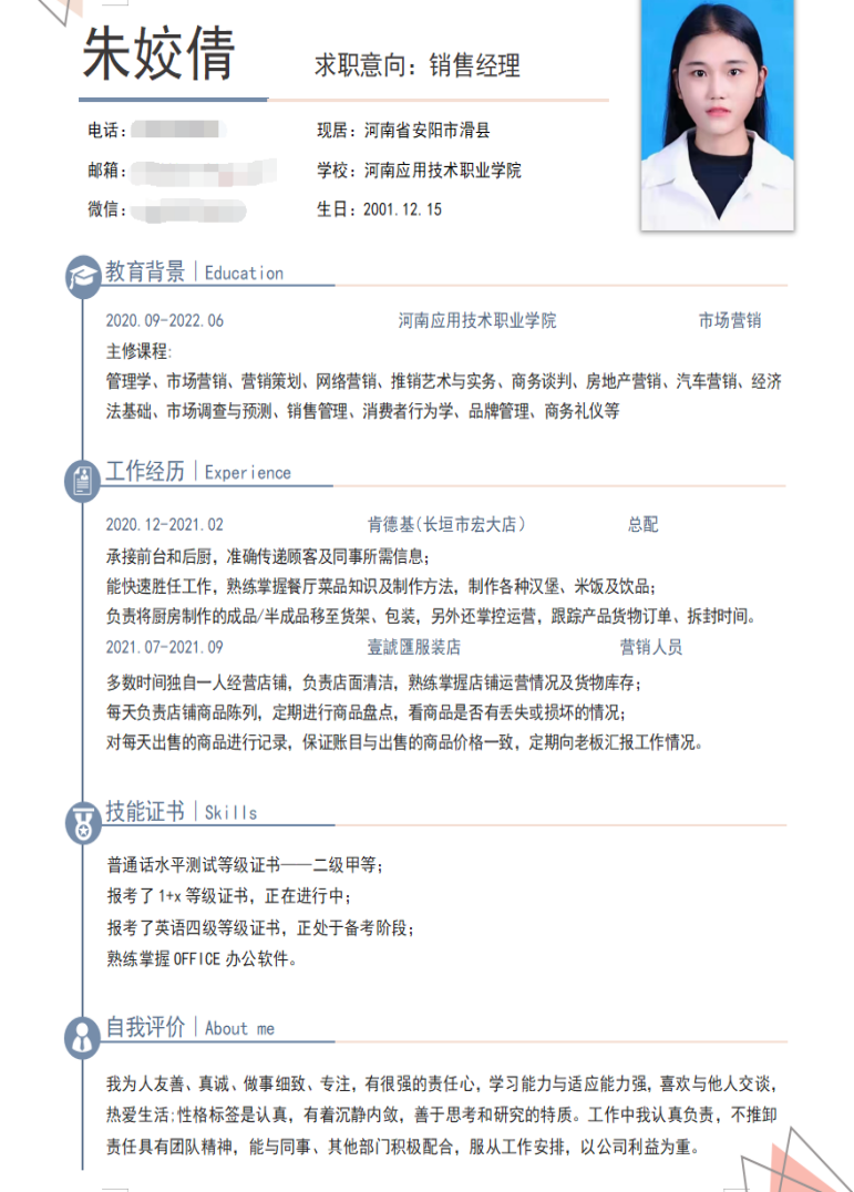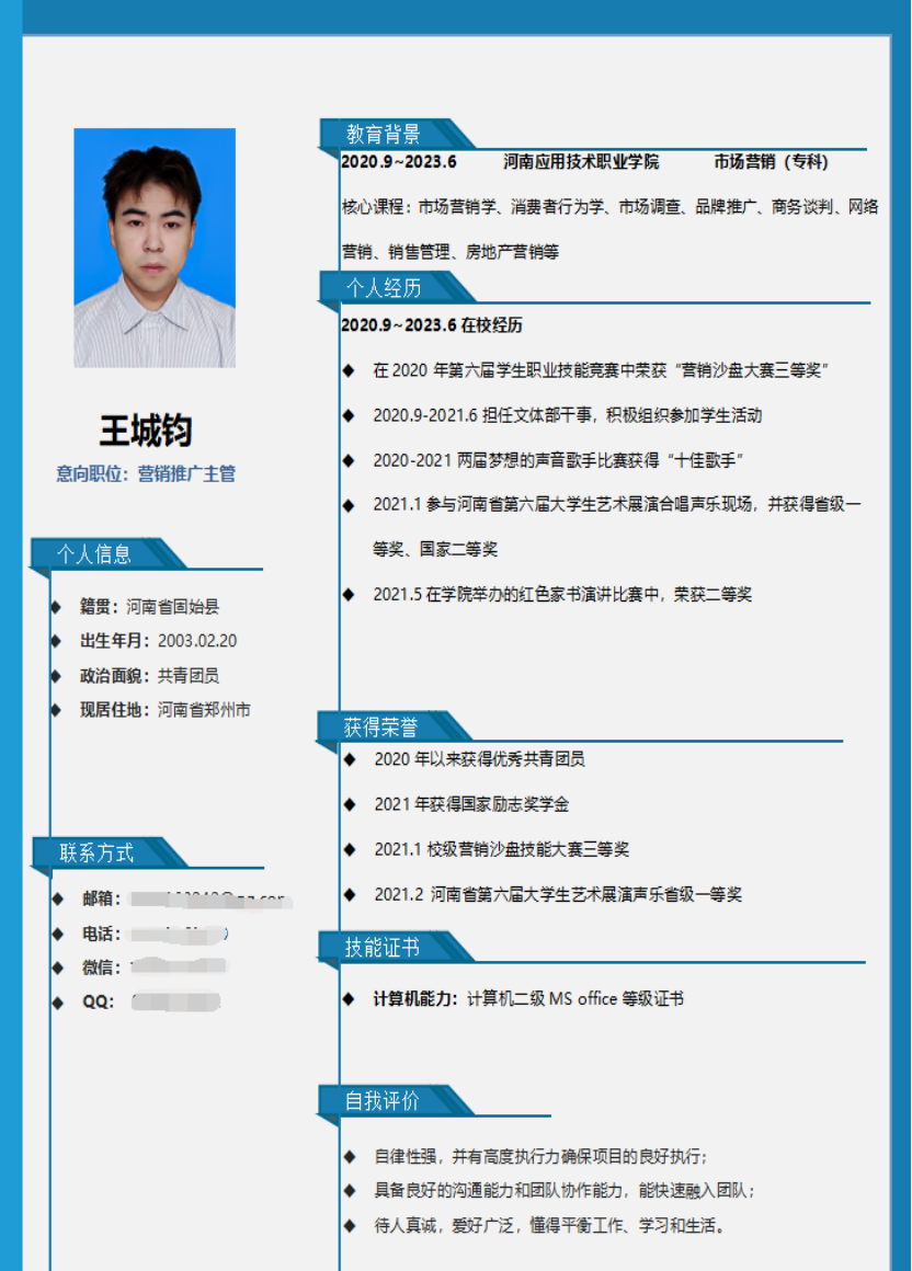 简历是展示自我的一块求职“敲门砖”,为帮助kaiyun登录中国入口登录20级学生增强就业意识,充分做好就业准备,制作出优秀的简历并能在求职过程中成为自身的“重要法宝”。kaiyun登录中国入口登录开展了第五届简历设计制作大赛,kaiyun登录中国入口登录20级全体学生参与了简历制作。下面我们来共同欣赏20级求职小可爱们的优秀简历吧!
