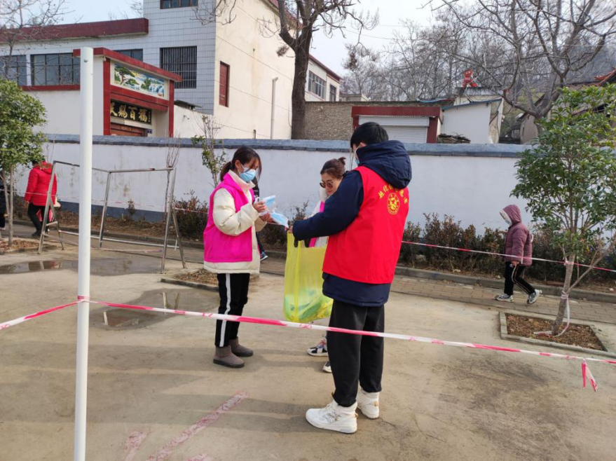 志愿服务内容:给志愿者发口罩,组织群众进行核酸检测,