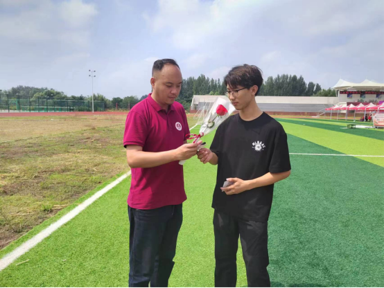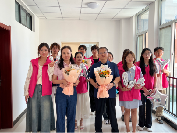 (学生代表向老师们送花)
