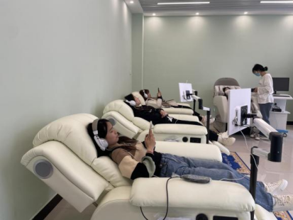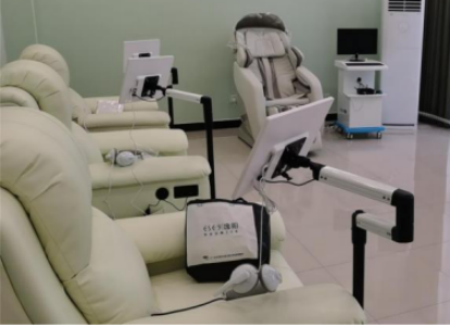 在智能身心减压放松室,体现智能身心减压系统,通过缓解同学们的身心压力,消除紧张、焦虑等负面情绪的影响,促进其情绪稳定和身心放松能力提升。