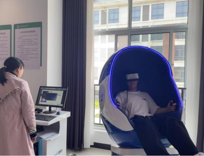 同学们依次学习体验了心理自助预约系统、智能身心减压放松系统、VR体验系统、认知训练系统、智能宣泄互动系统、智能宣泄呐喊系统、团体辅导工具、正念反馈精灵等设施。并利用VR技术为同学们提供高仿真、高沉浸场所,辅助其开展专项心理训练、身心调适、缓解心理压力、提高身心耐受力。