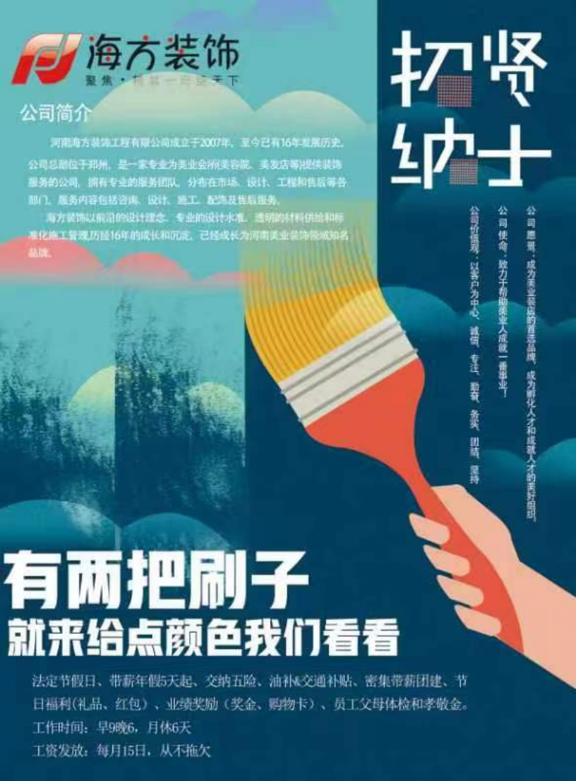河南海方装饰工程有限公司(以下简称海方装饰)是在国家工商部登记注册的正规装饰公司,成立于2007年,至今已有16年发展历史。