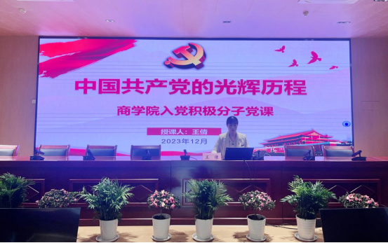 王倩主要从中国共产党的光辉历程和当代大学生与中国共产党两部分内容进行讲授。首先,从新民主主义革命时期、社会主义革命和建设时期、改革开放和社会主义现代化建设新时期、中国特色社会主义新时代为同学们讲述了党的百年历史,介绍了从1921年到2023年,过去的一百多年间,中国共产党是如何团结带领中国人民书写了中华民族几千年历史上最恢宏的史诗。让同学们充分认识到没有共产党,就没有新中国;没有共产党,就没有我们今天的幸福生活。其次,王倩从当代大学生作为朝气蓬勃,奋发有为的一代,是具有年龄、知识、能力等各方面优势的活跃群体,第一,应该有属于自己的人生追求,而且应该有高层次的追求;第二,只有将自己的人生目标与价值追求同国家和社会的需求统一起来,才能使自己的人生价值得到实现和提升;第三,要以积极行动争取早日加入中国共产党是当代大学生的正确选择。