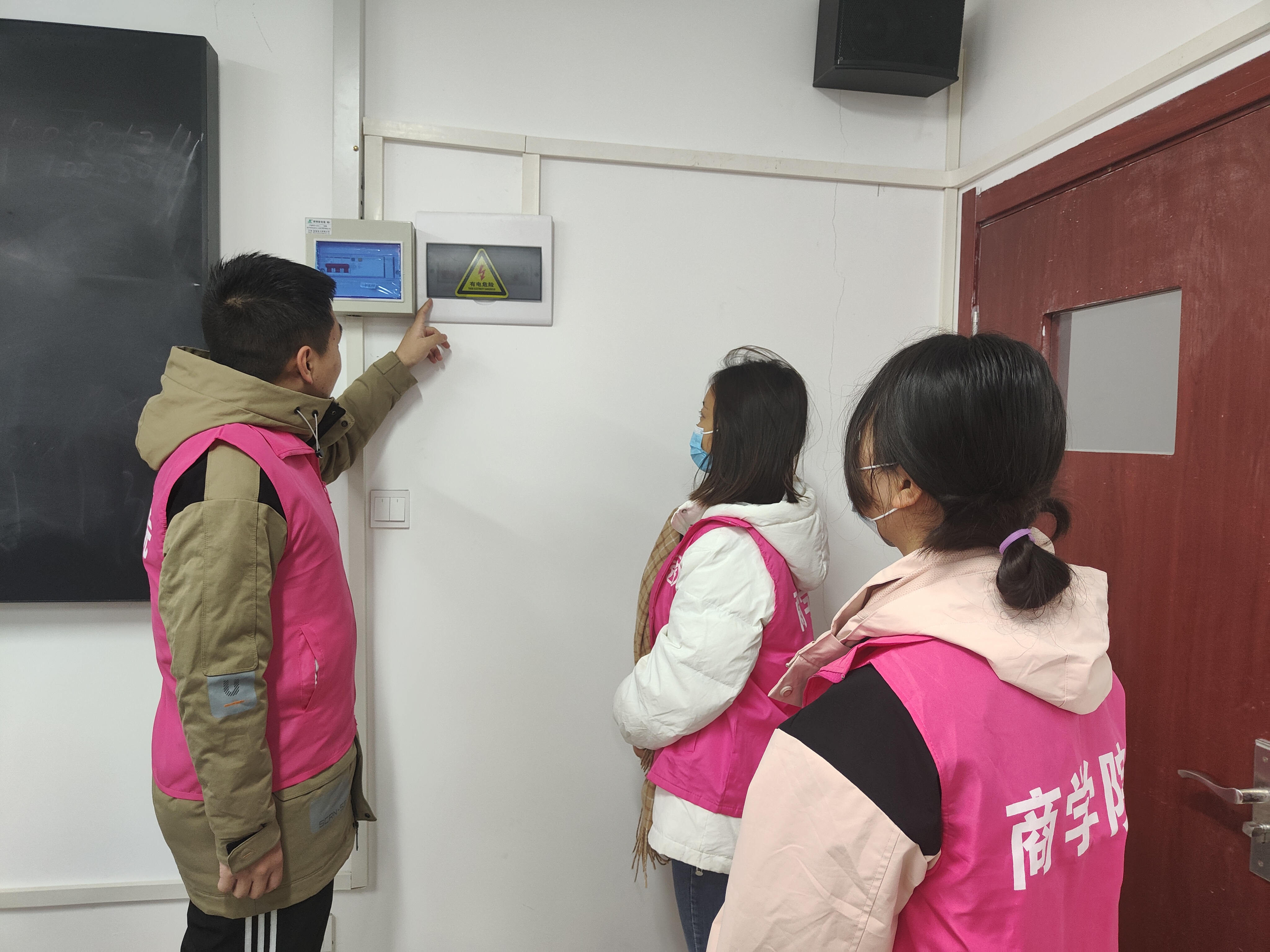 为进一步增强我院学生教室和实验室安全意识,帮助同学们了解和掌握必要的教室和实验室安全知识与技能。通过安全讲解员实地带领学生边观察边讲解。在教室安全方面,强调由于现在的教室大都有多媒体设备,因此要着重注意电路、电线等老化问题,教室没有人时要及时切断电源。坚持“预防为主,防消结合”的原则,做好安全隐患排查,提高防范意识,掌握灭火方法。在实训室安全方面,讲解员强调要关注实验室常见火灾隐患,包括电器设备过载,线路老化、短路;随意使用明火,电器设备使用不当等等。而实验室预防火灾要做到电气设备用电不得过载;发现电路老化、短路及时报修更换等等。