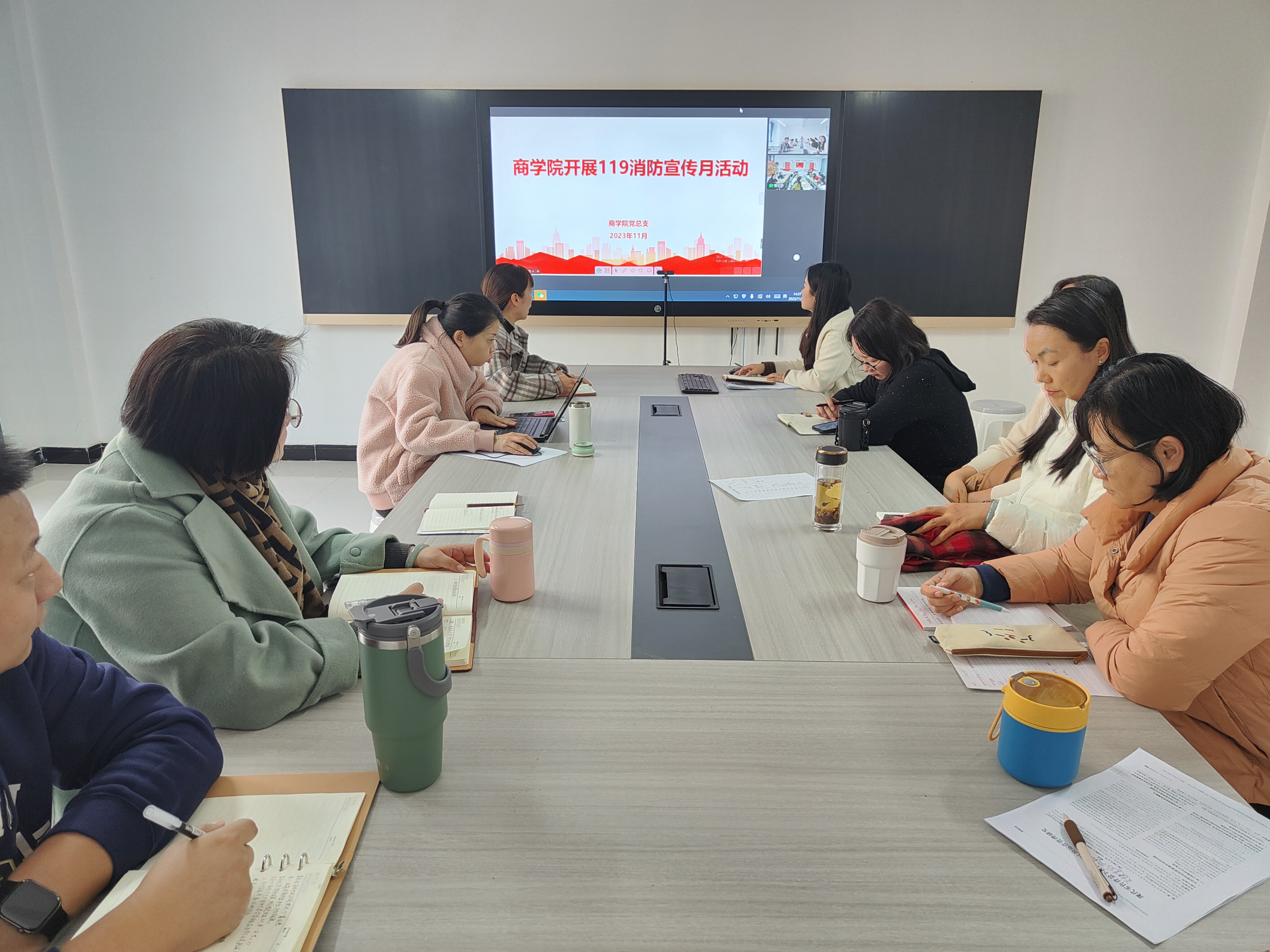 为进一步使同学们增强防灾减灾意识及应对突发事件的能力,11月1日至11月15日,各班辅导员和班长开展形式不一的主题班会。主题班会过程中,通过播放火灾警示片、幻灯片示例图片演示,图文并茂,从消防安全基本知识、宿舍消防安全事项到火灾后如何疏散逃生自救、如何正确报警以及灭火器的正确使用方法等内容进行共同分享,再一次提醒同学们安全在于防范。通过这次主题班会,所有同学都进一步增强了的防火意识和逃生自救常识,他们表示一定以“咬定青山不放松”的决心,进一步牢固安全底线。