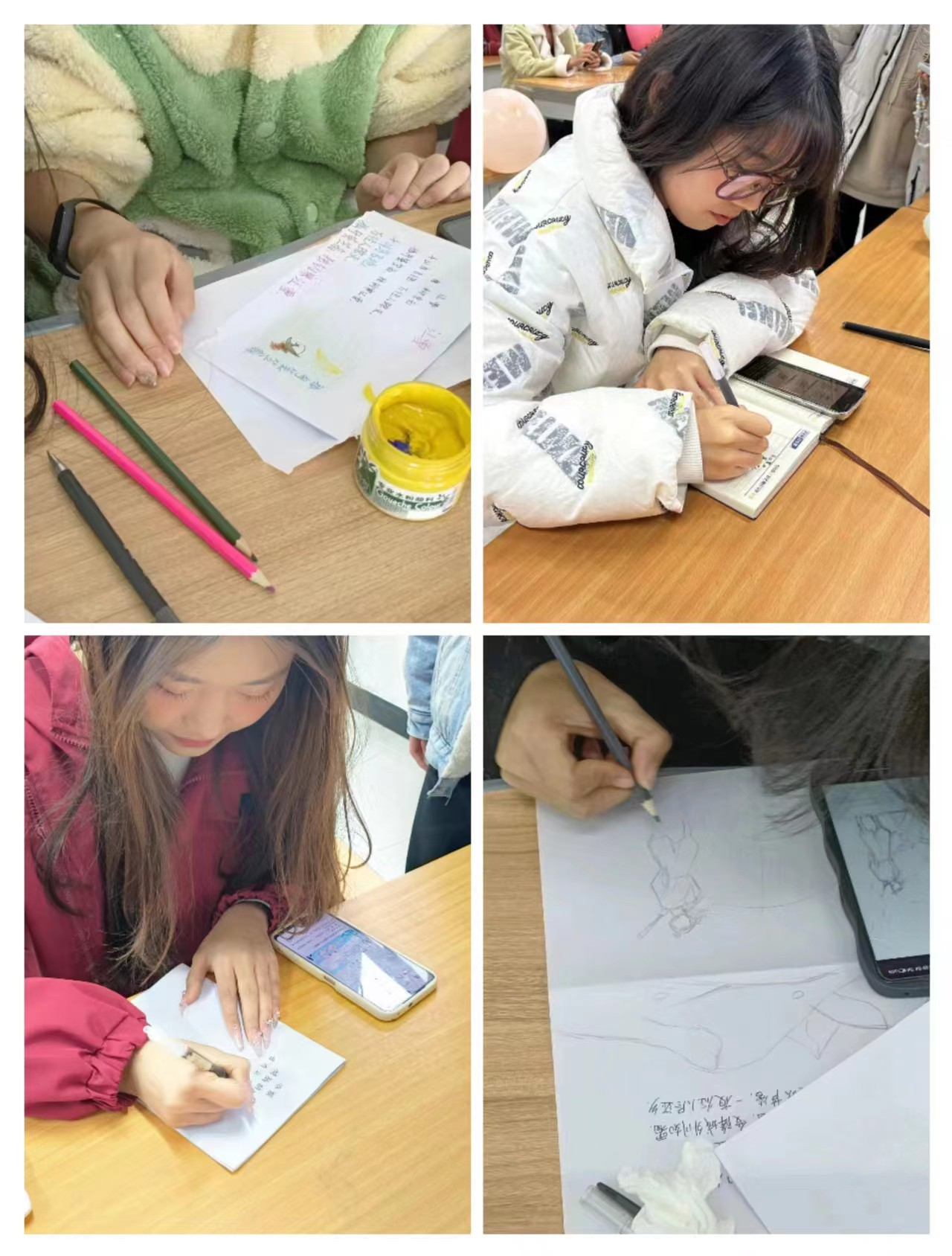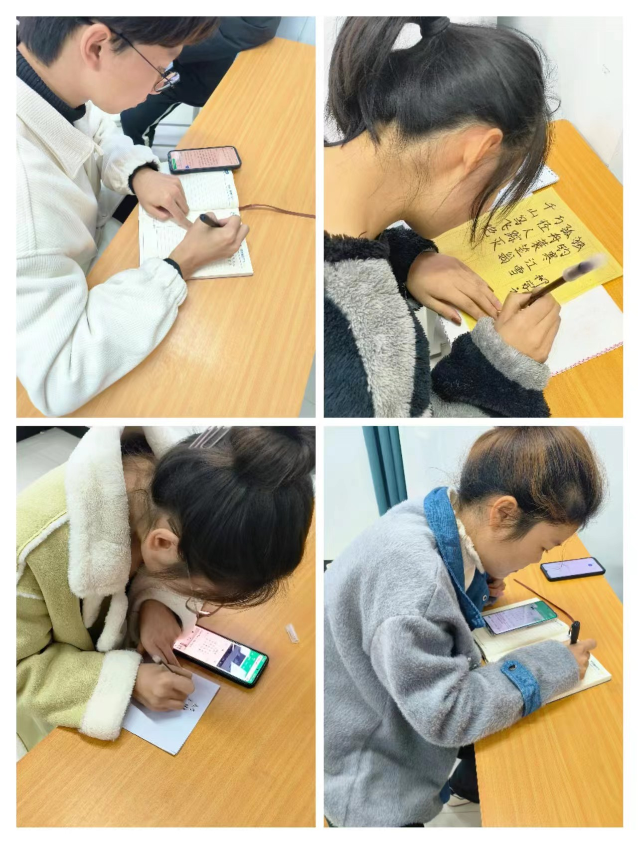 与笔墨交友不累,与碑帖谈心最真。同学们在纸上书写自己喜爱的诗句,以清风为笔,书写爱意。