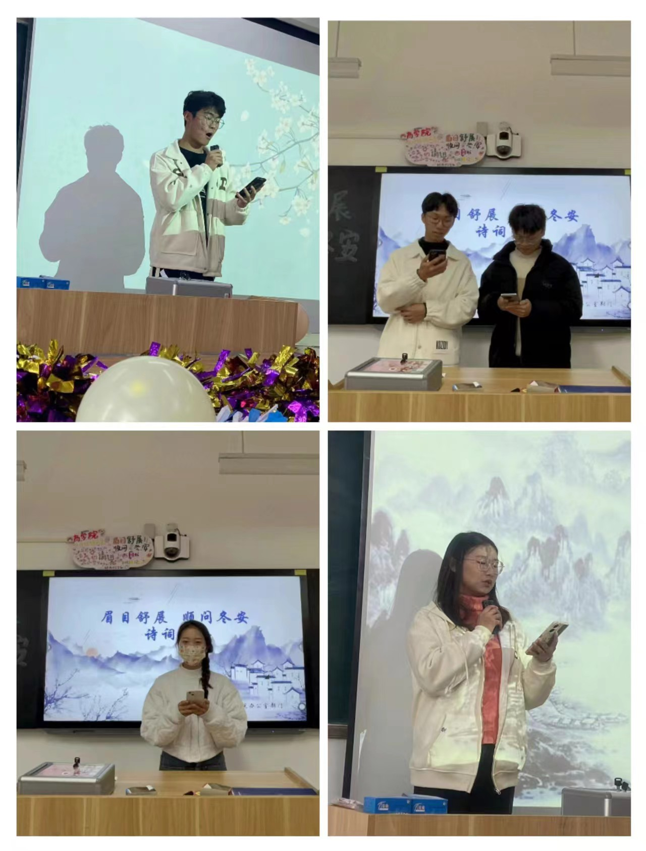 谈古人之声,兴今人之怀。人生最美好的事情莫过于拥有诗和远方。本次冬日诗词大会的顺利开展,让同学们再次走近诗词,调动了同学们对诗词的热情,让同学们在“知行合一”中,对古诗词有了更加深刻的认识。