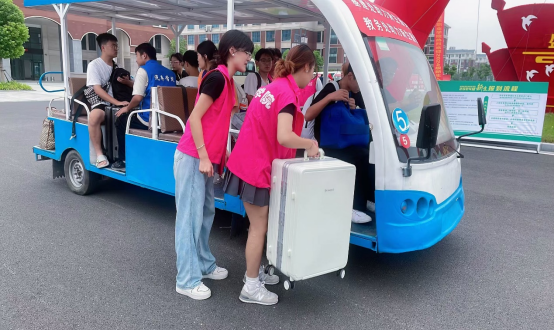 为了让学院学生更方便到达校园,学校精心筹备、细致安排。一辆辆摆渡车在校内往返,迎接每一位怀揣梦想的新生。并在下车点安排志愿者指引,耐心解答新生疑惑,从校园的布局到报到流程安排,从食堂的美食到温馨的宿舍环境,事无巨细、一一作答。