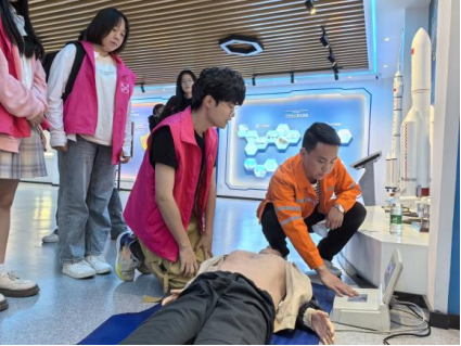 活动伊始,学生们在化学工程学院讲解员的引导下,进入了模拟灾震环境。这里,地震模拟设备真实还原了地震时的震动场景,让参与者身临其境地感受到了地震带来的强烈冲击。紧接着,专业人士展示了急救方法。首先介绍了心肺复苏术(CPR)的基本步骤和注意事项,随后利用模拟人进行了现场演示。在专业人士的指导下,部分学生积极参与了实践操作,掌握了CPR的基本技能。
