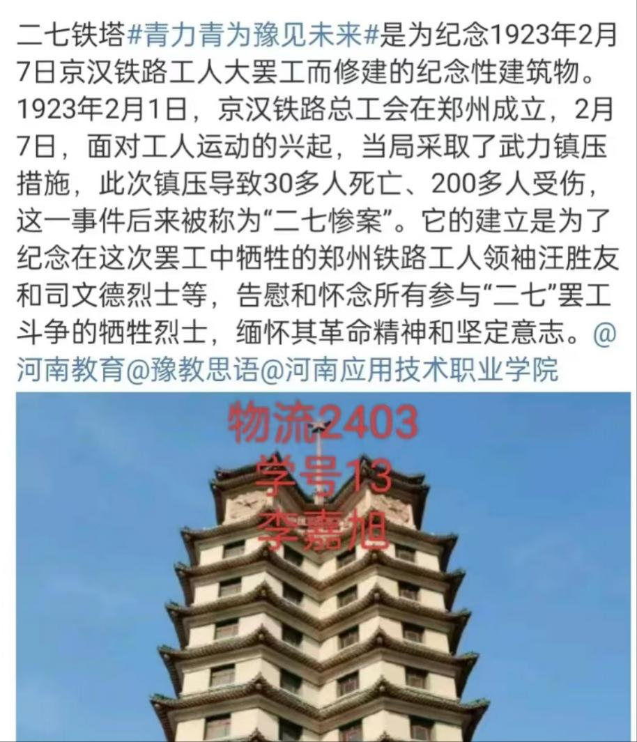 “当代大学生应以青春之名,缅怀先烈,传承精神,奔赴强国新征程。”—物流2403李嘉旭