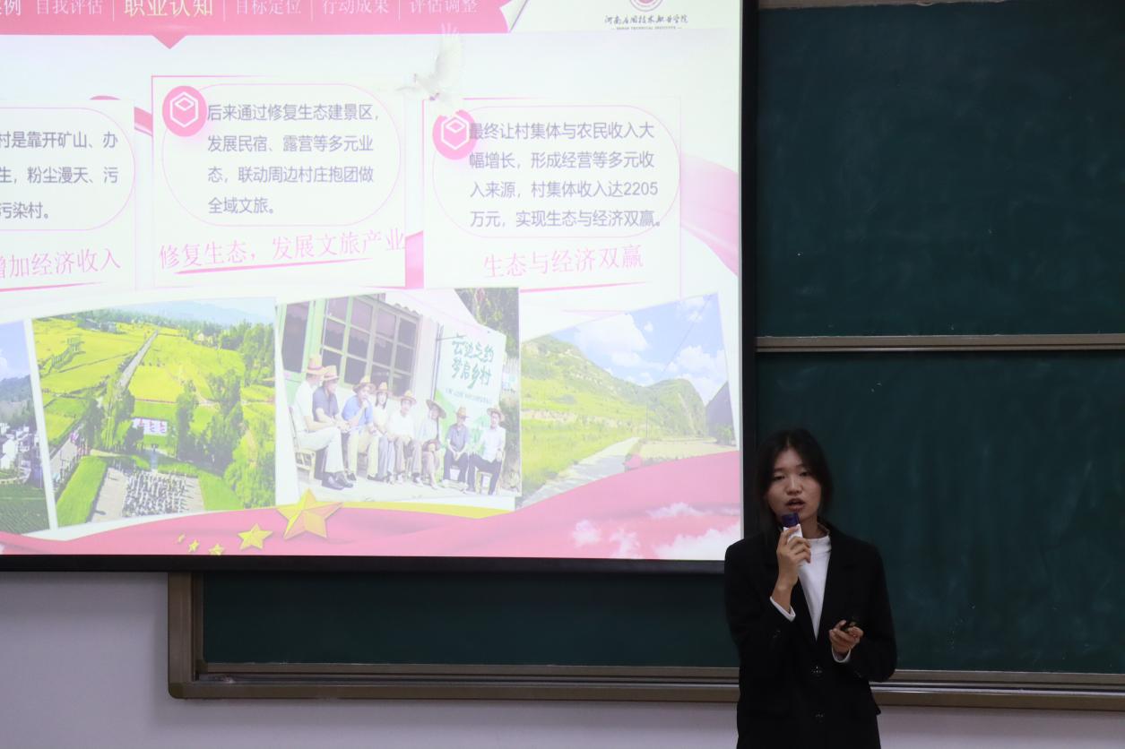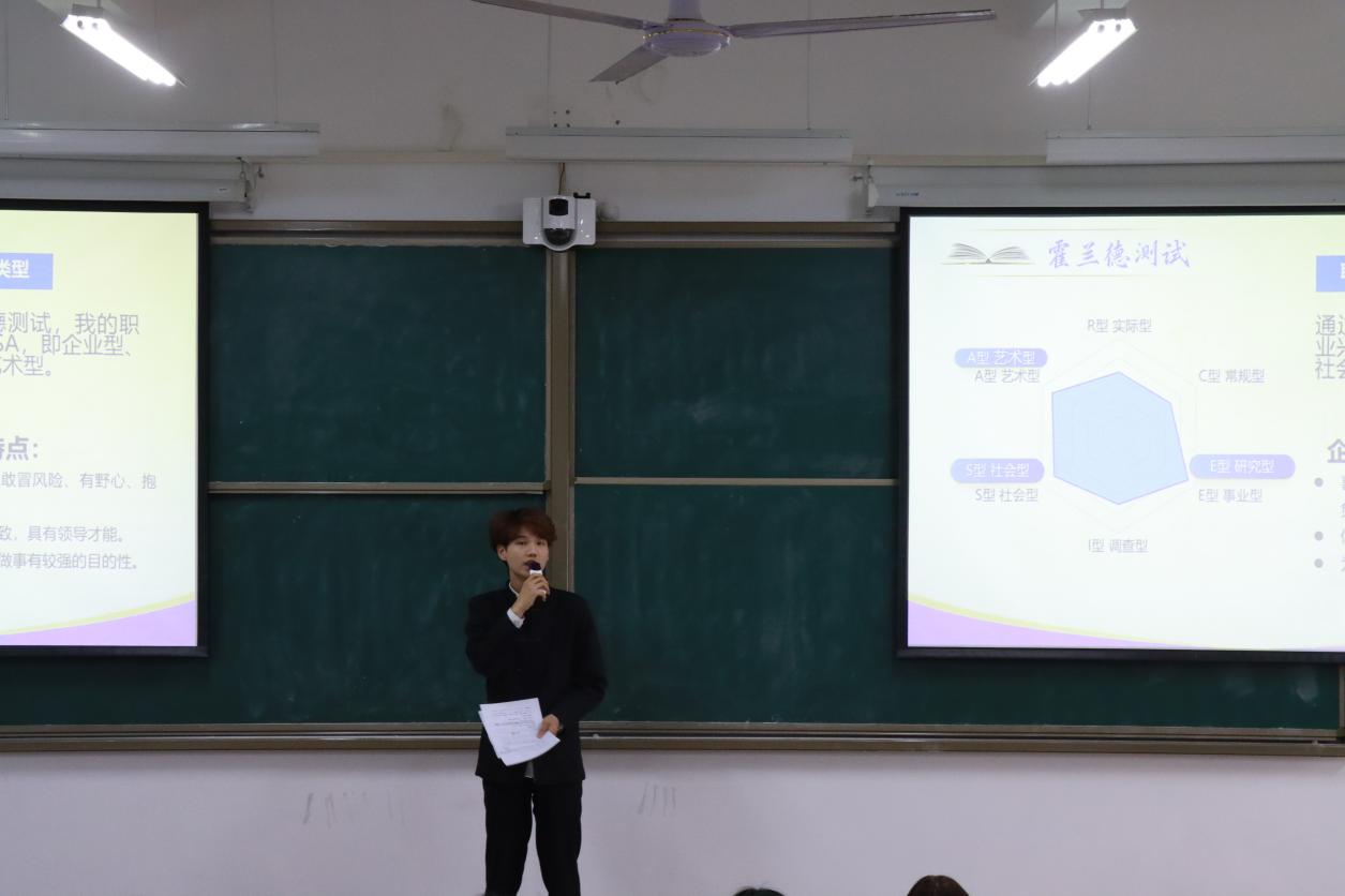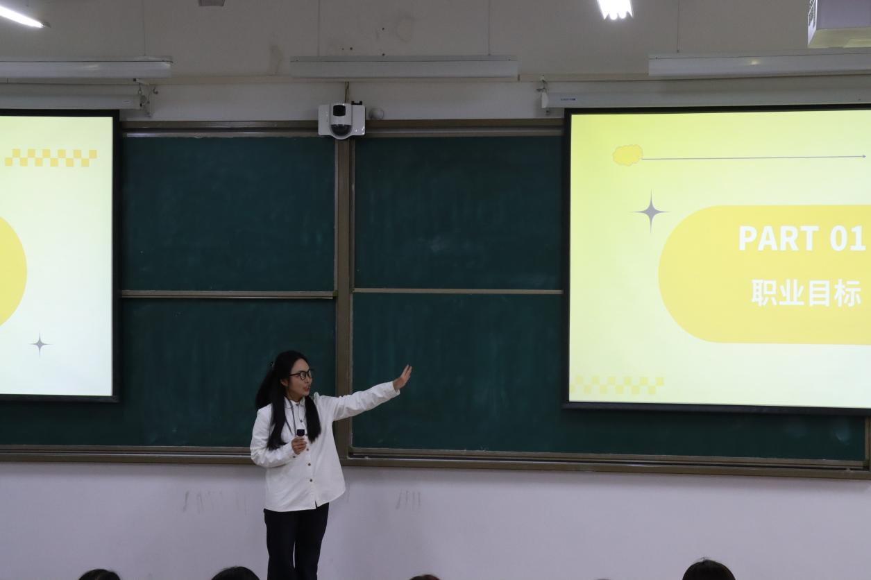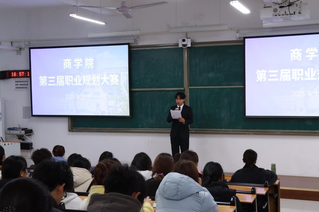 决赛现场分为职业规划展示、评委提问、现场点评三个环节。选手们通过 PPT 展示,从自我认知、职业分析、目标设定、实施计划、评估调整等方面,清晰呈现了个人职业生涯规划蓝图。有的聚焦电子商务、市场营销等热门领域,结合行业趋势制定精准发展路径;有的立足自身专业优势,规划了创业或深耕专业领域的职业方向,展现出扎实的专业素养和清晰的职业思考。