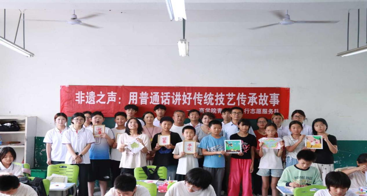 实践期间,“青春e行志愿服务队”用行动诠释责任:在田间地头,队员深入拍摄素材,手把手教农户用剪映制作短视频,以“三组联动”模式高效破解产销难题,让“手机是新农具,直播是新农活”的理念深深扎根乡亲心中;在北村小学课堂,绕口令比赛里孩子们的清脆笑声、水拓画与植物拓染创作时的专注眼眸、接收捐赠物资时的光亮眼神,让队员们真切触摸到教育的温度与力量。