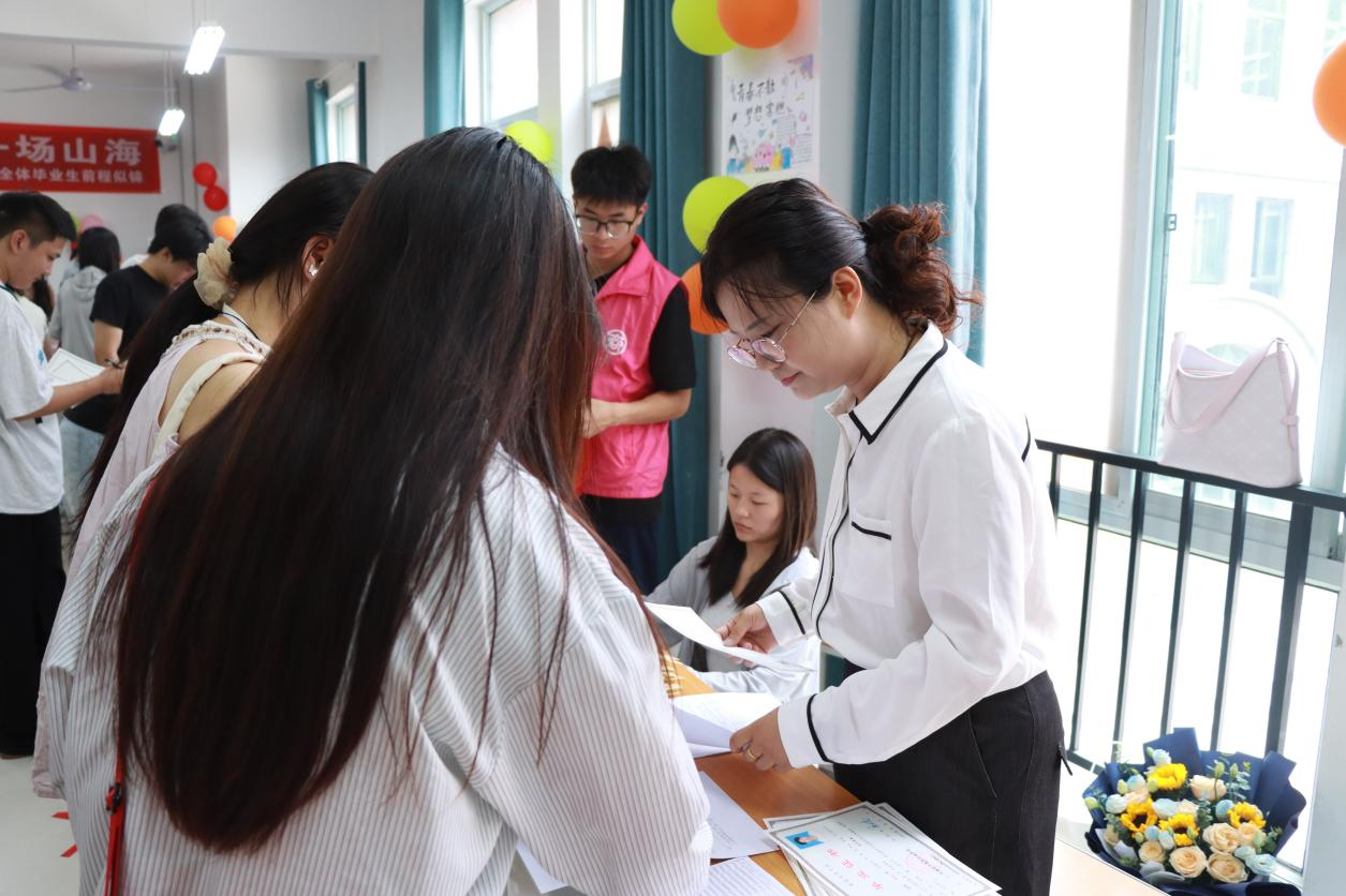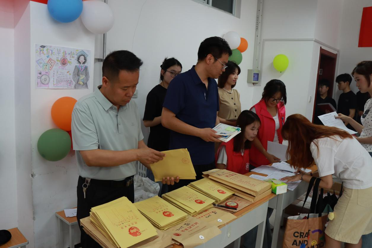 在毕业证领取现场,精心布置的签名墙上,毕业生们挥毫写下对未来的期许与对母校的祝福。一句句真挚的话语,一个个潇洒的签名,定格成属于这个夏天的纪念。当他们从辅导员老师手中接过沉甸甸的毕业证书时,指尖触摸到的不仅是纸张的质感,更是知识与成长交织的硕果。老师们温暖的笑容、真挚的祝福,“毕业快乐,前程似锦”的话语,饱含着无尽的牵挂与期许,让这份毕业时刻更添一份温情。